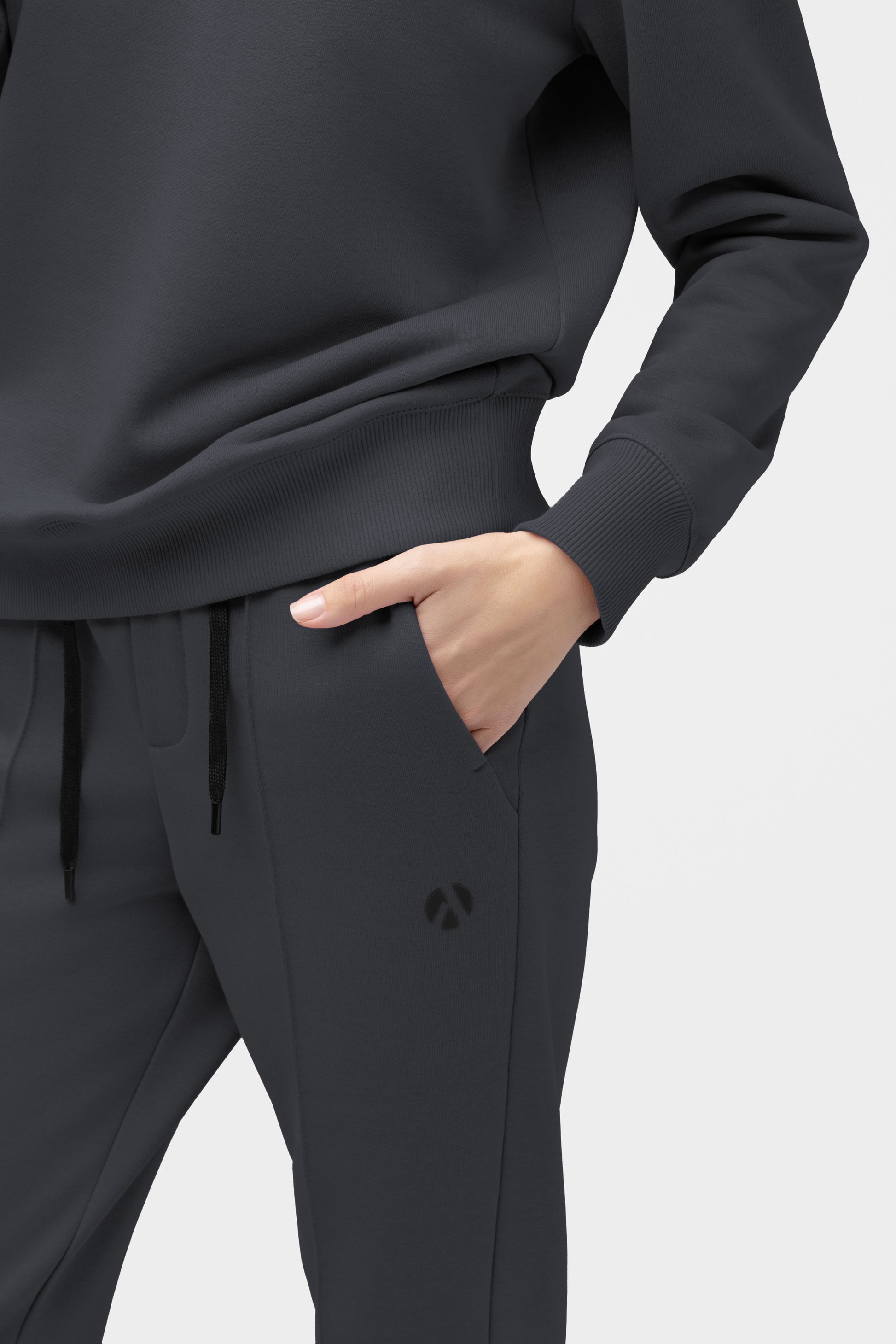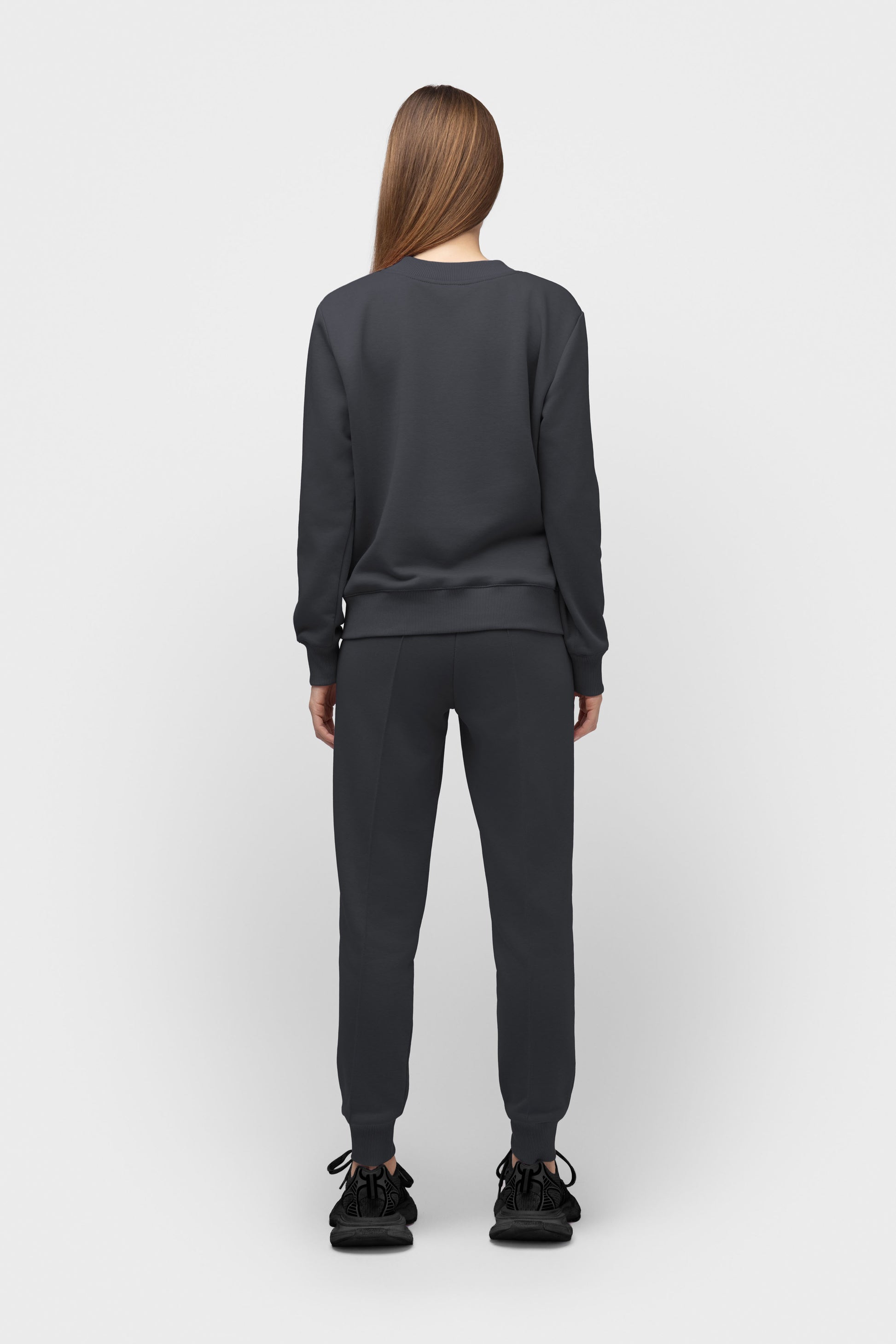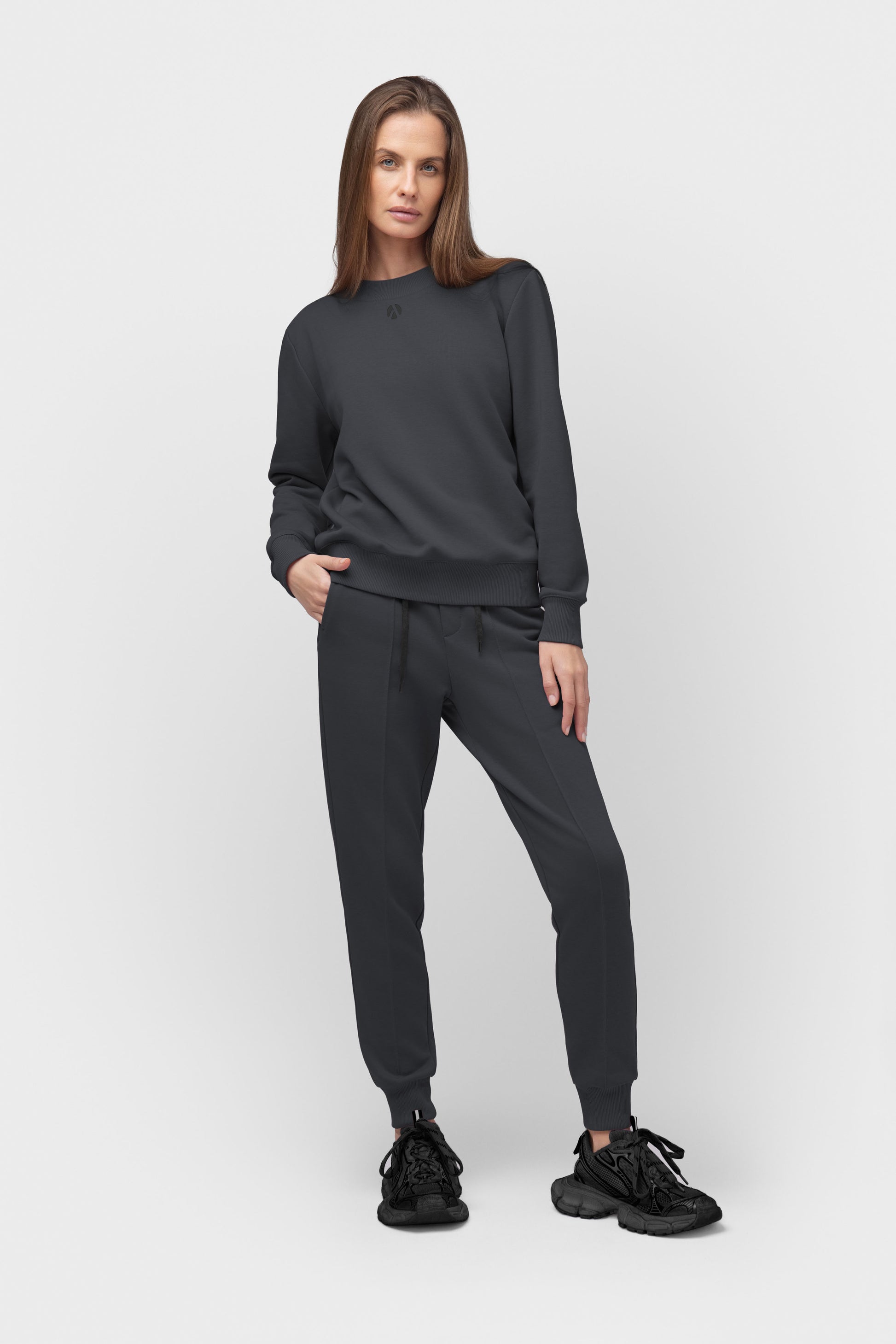 Zweiteiliger Freizeitanzug in Dunkelgrau mit schwarzen 3D-Logo-Transfers.