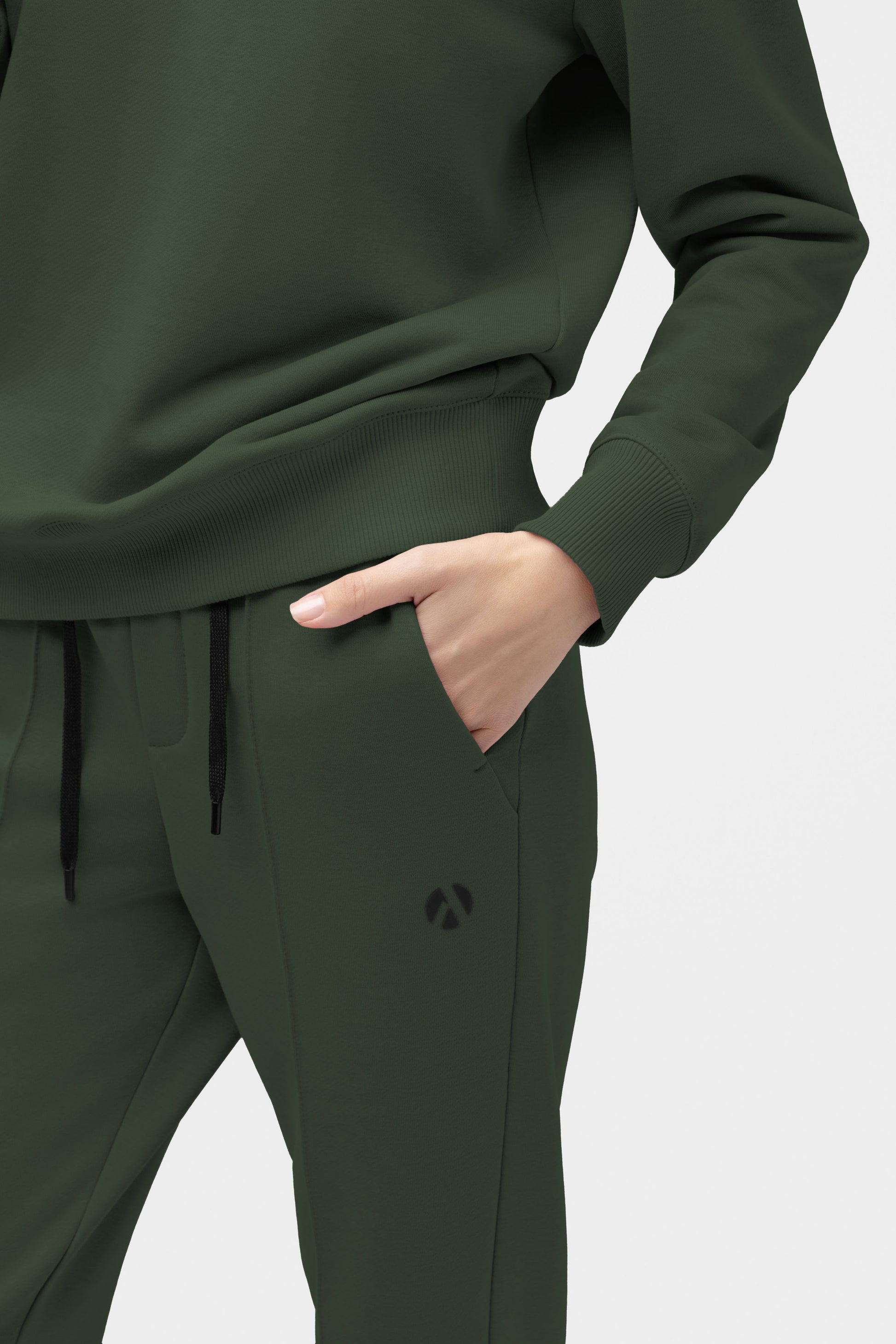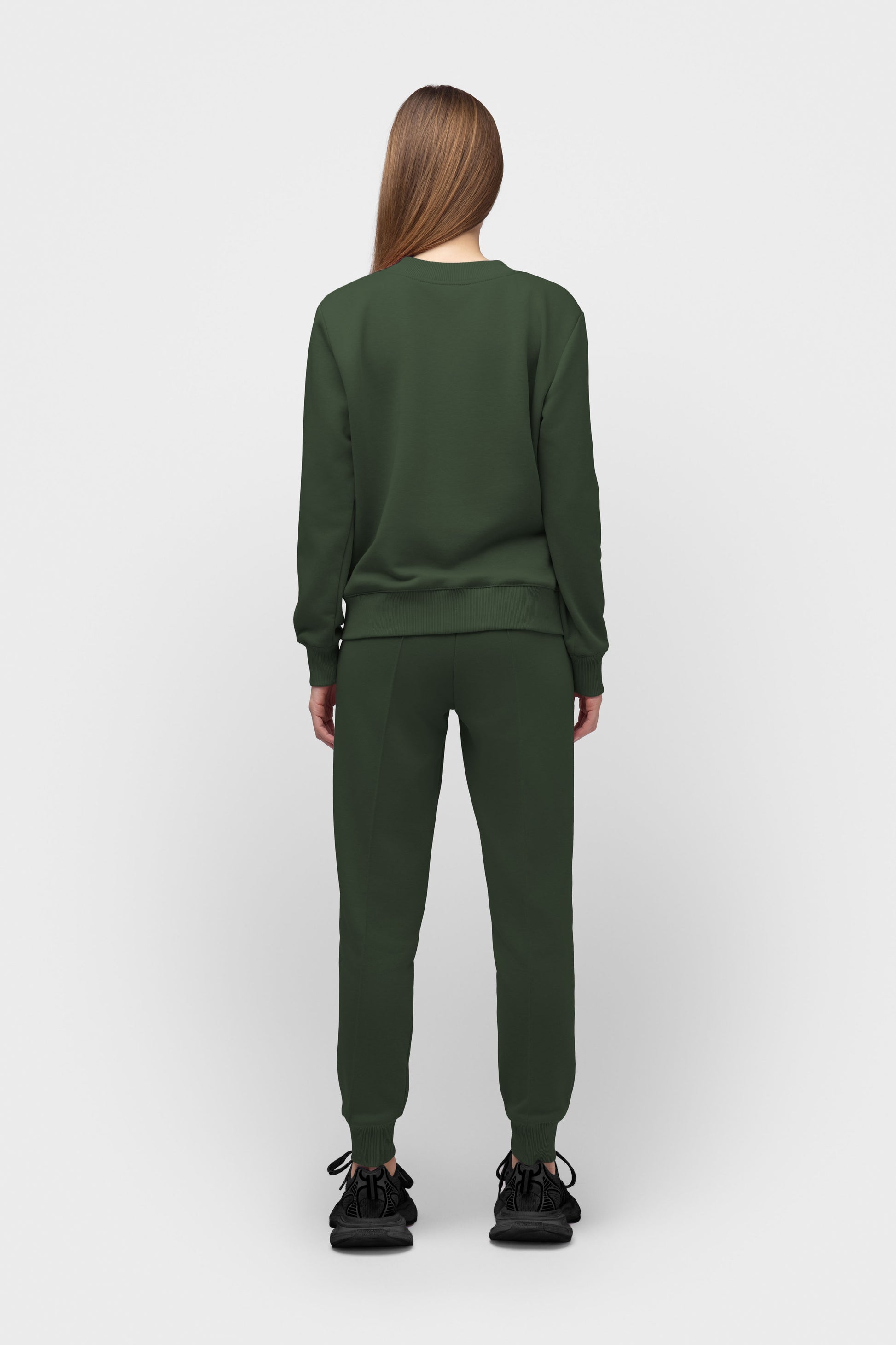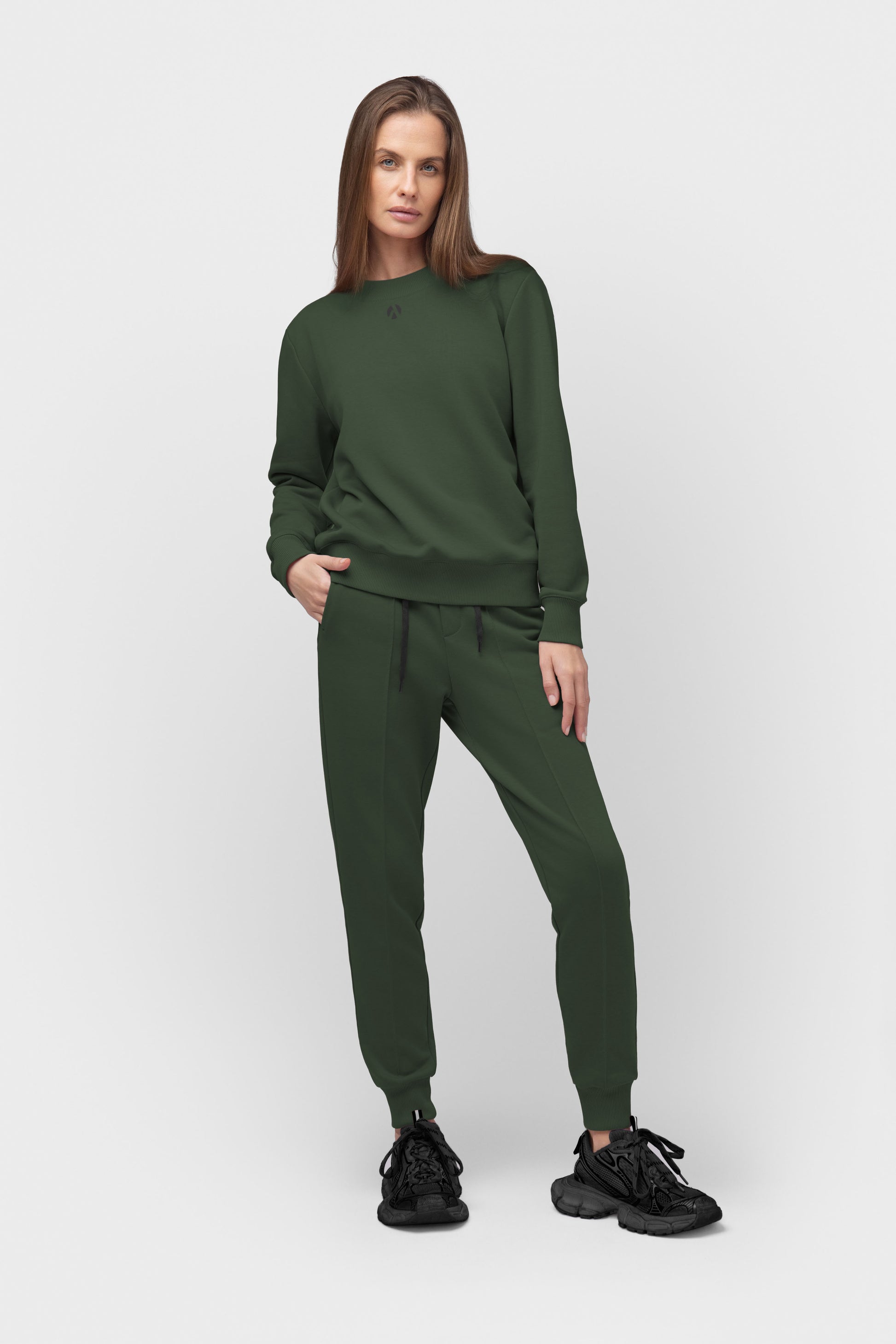 Zweiteiliger Freizeitanzug, grün, verziert mit schwarzen 3D-Logotransfers.