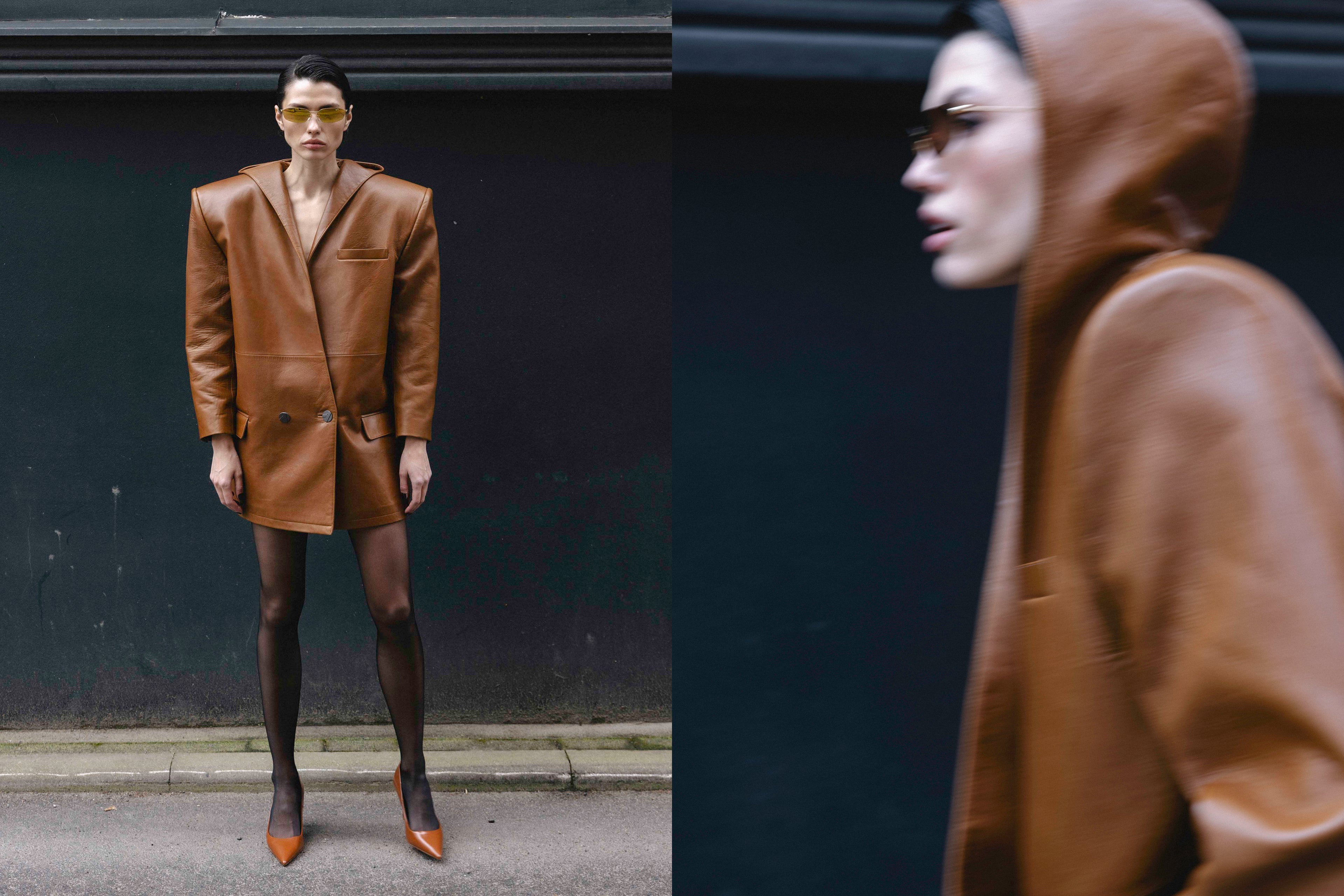 Kolekcijoje gausiai naudota natūrali oda yra ir galios išraiška, ir jutiminis potyris. Ji šiurkšti, bet elegantiška. Lyg antra oda – sauganti ir įgalinanti. Oda tarytum kalba apie moters stiprybę, pasakoja istoriją apie drąsą ir kūnišką artumą medžiagai.