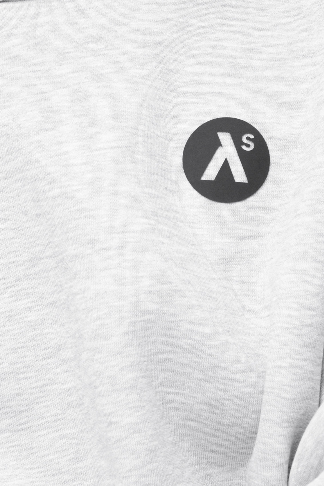 Light-grey colored, minimalist and sporty two-piece set made from soft, skin-friendly loopback knit without fleece.