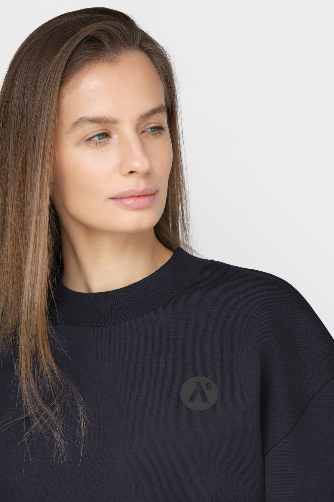 Blue-grey colored, minimalist and sporty two-piece set made from soft, skin-friendly loopback knit without fleece.