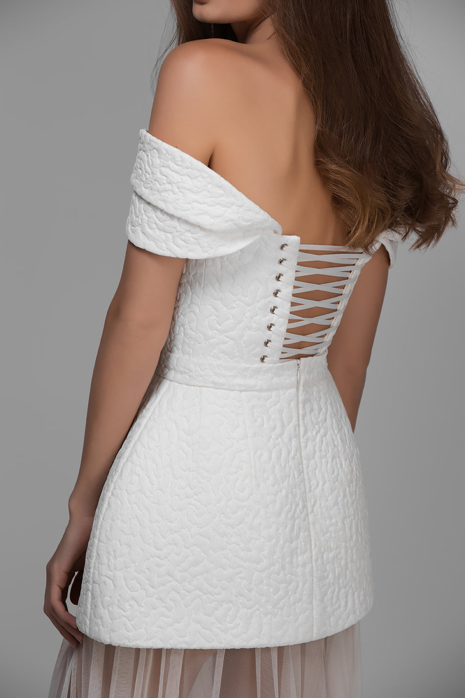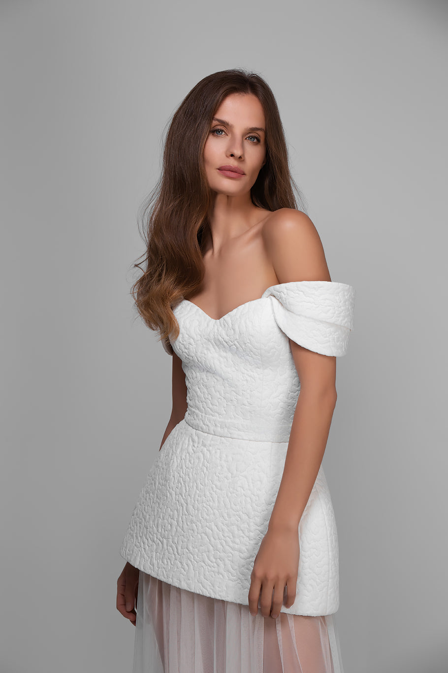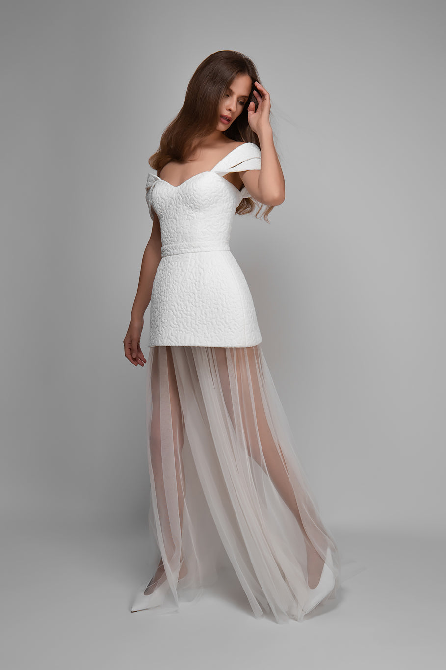 Three-Piece Wedding / Evening Look: Corset with Detachable Straps + Mini KONE Skirt + Long Tulle Skirt
