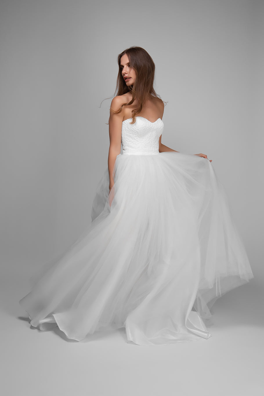 – Long Tulle Skirt – multi-layered, semi-sheer, with lining. Creates a sense of lightness, play of light, and volume.