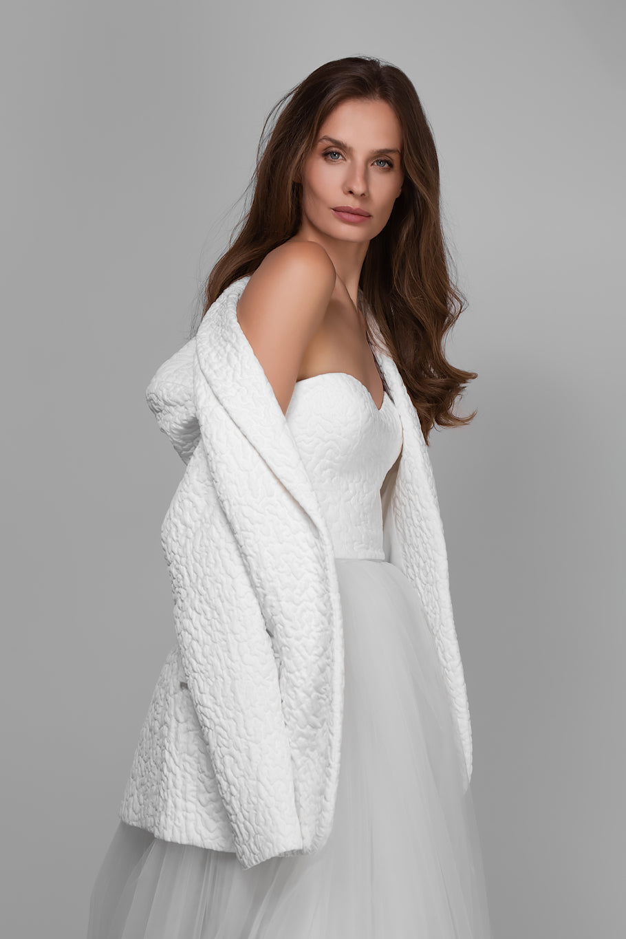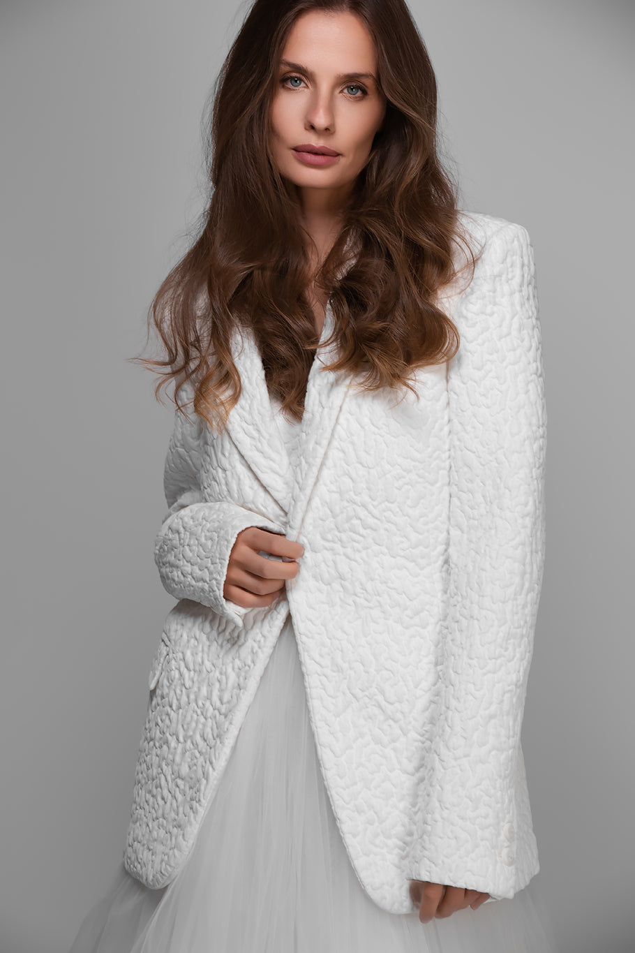 A separate jacket (LOOK 10) can be purchased – elongated classic cut, made from the same embossed silk as the corset.