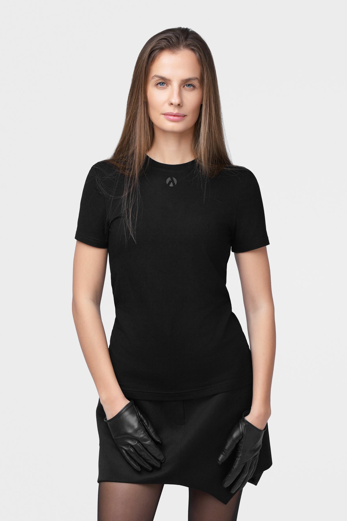 Long Black Four-Finger Gloves with SKRICK Embossing