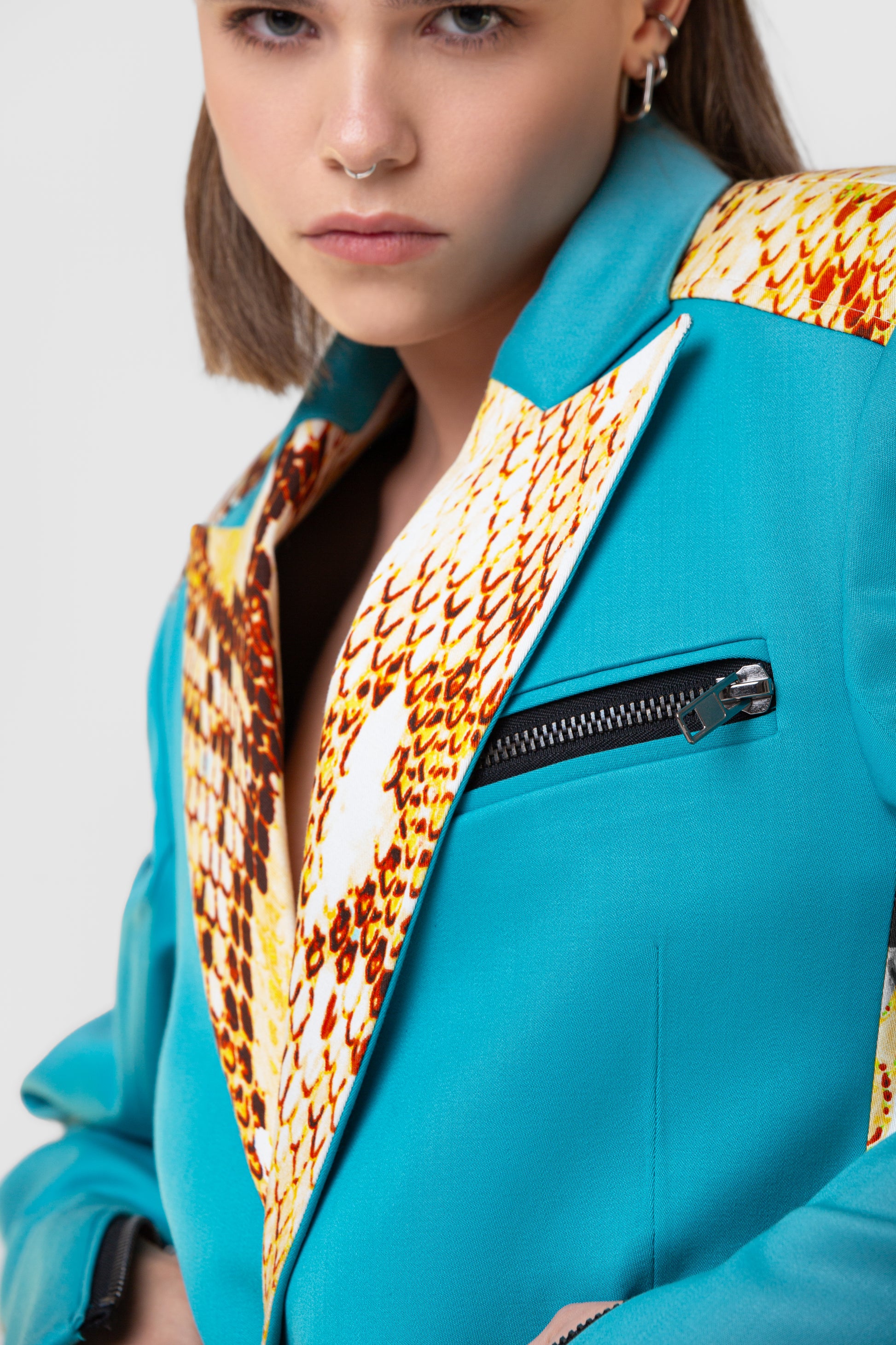 TURQUOISE/PYTHON PRINT MIDI JACKET