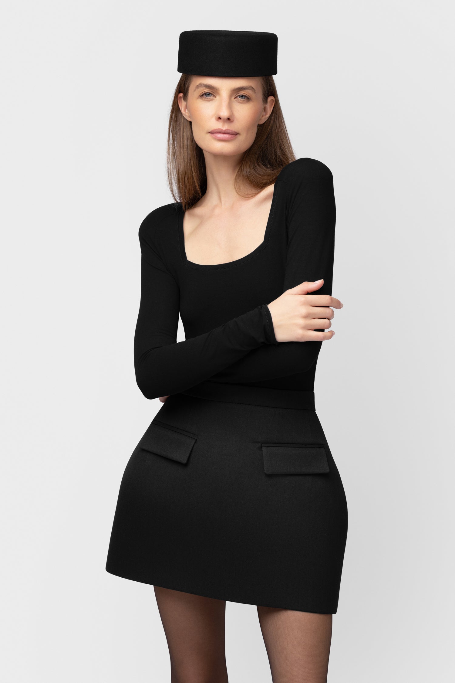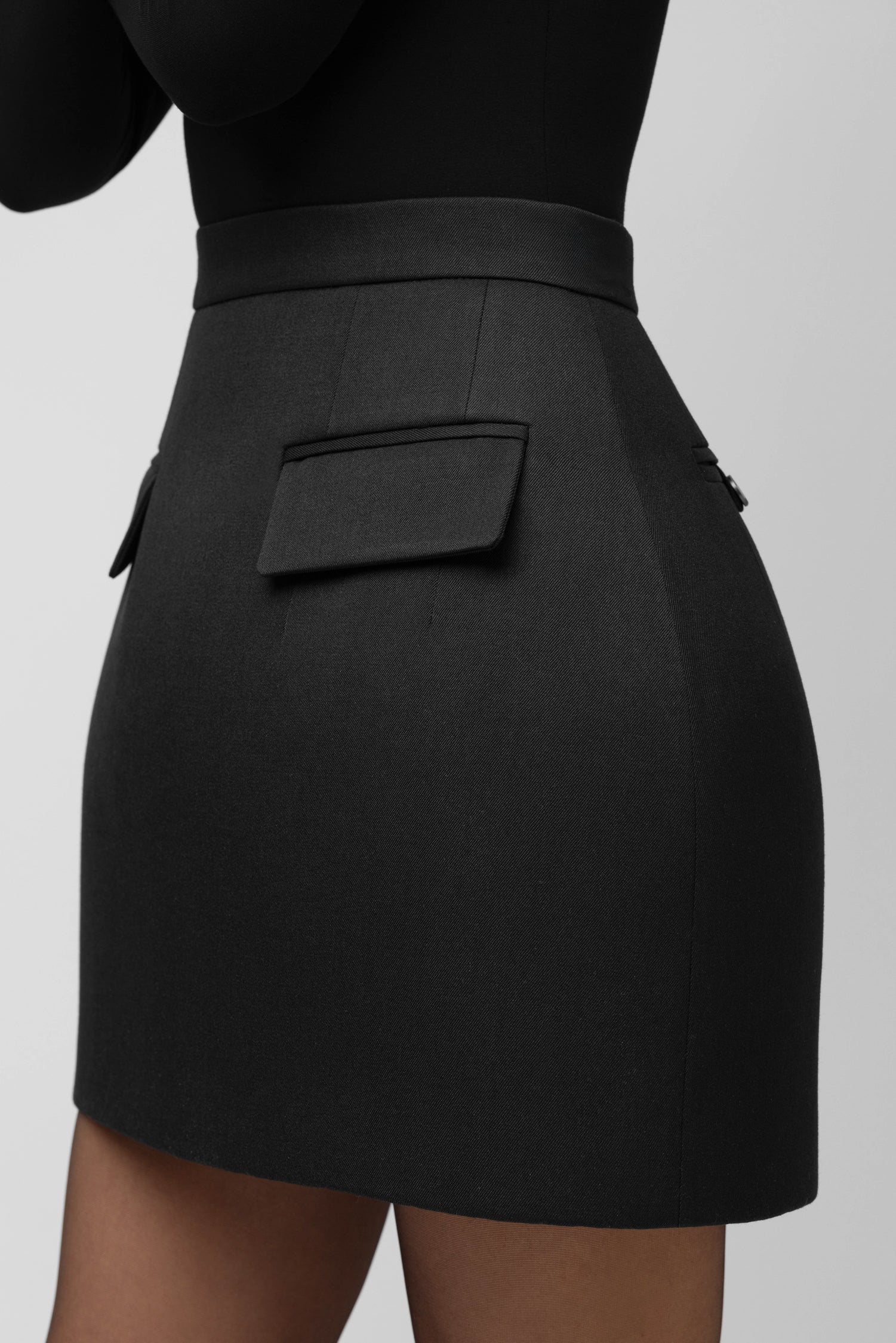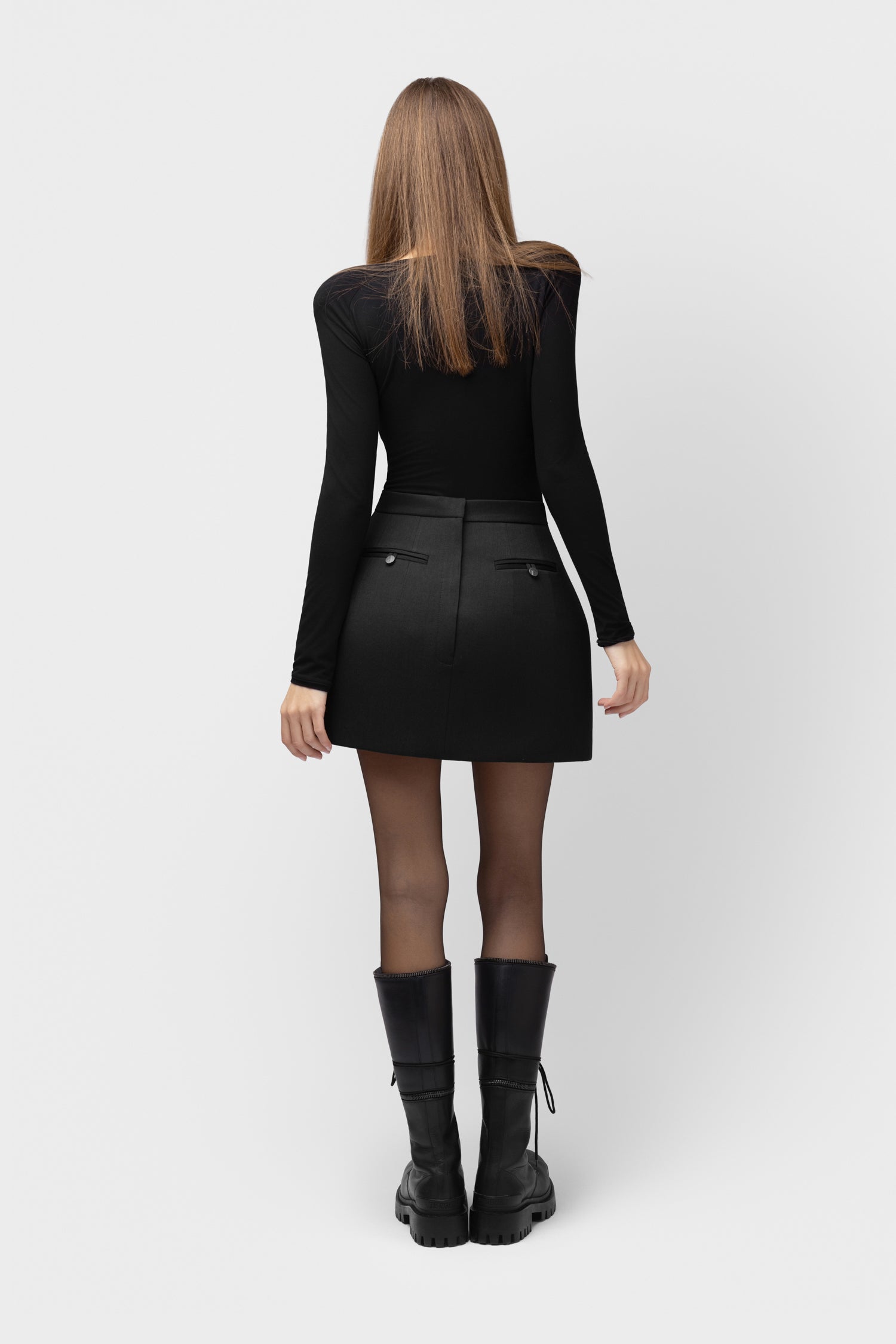 Skulptūriškos formos tūrinis sijonas iš kietintos, klijuotos vilnos, su konstrukciniais įdėklais, leidžiančiais išlaikyti formą net dėvint. Sijonas optiškai lieknina siluetą, pabrėžia liemenį ir tinka įvairioms figūroms.