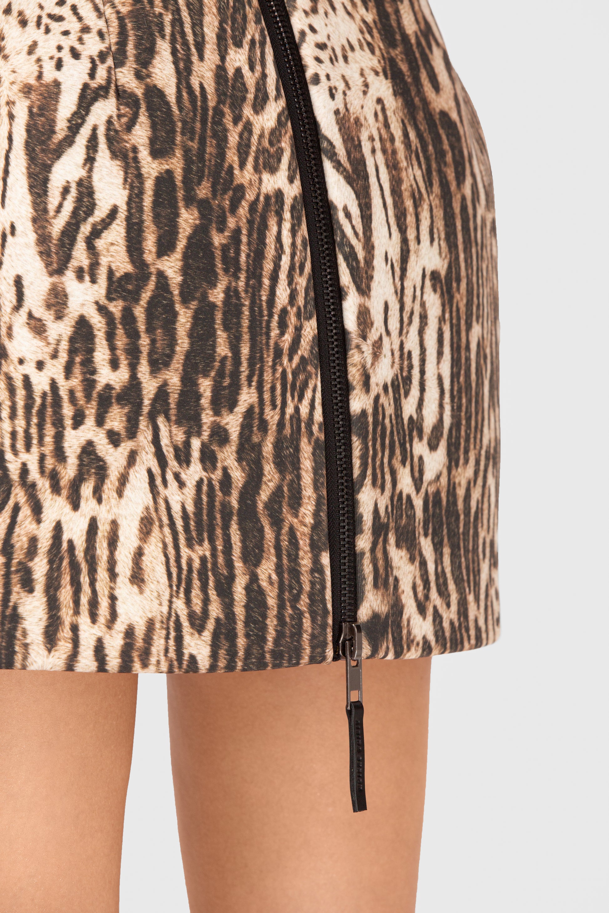 Gyvūno rašto korsetuota KONE suknelė. Gale įsiūtas stambaus metalo takelio atidaromas užtrauktukas.
