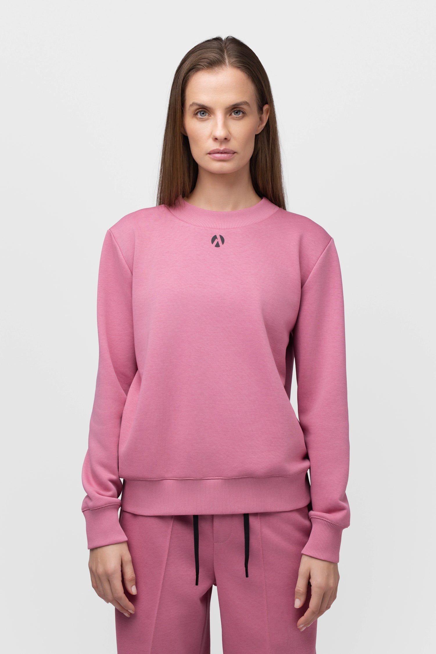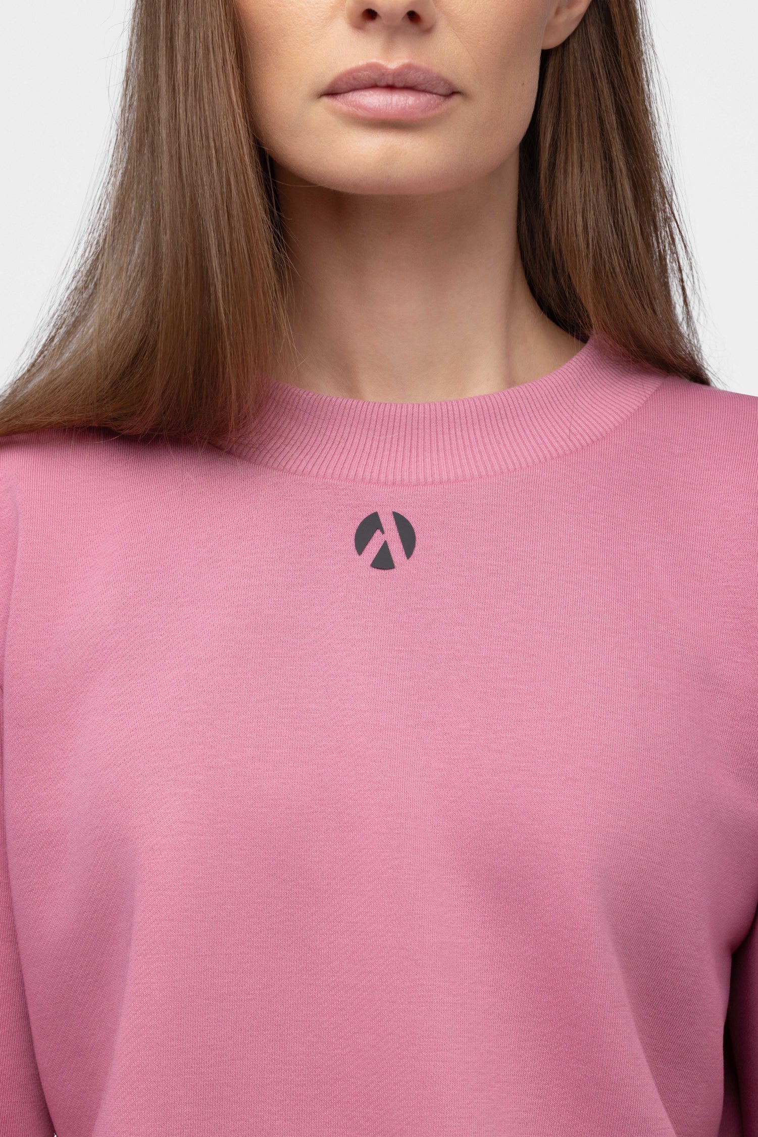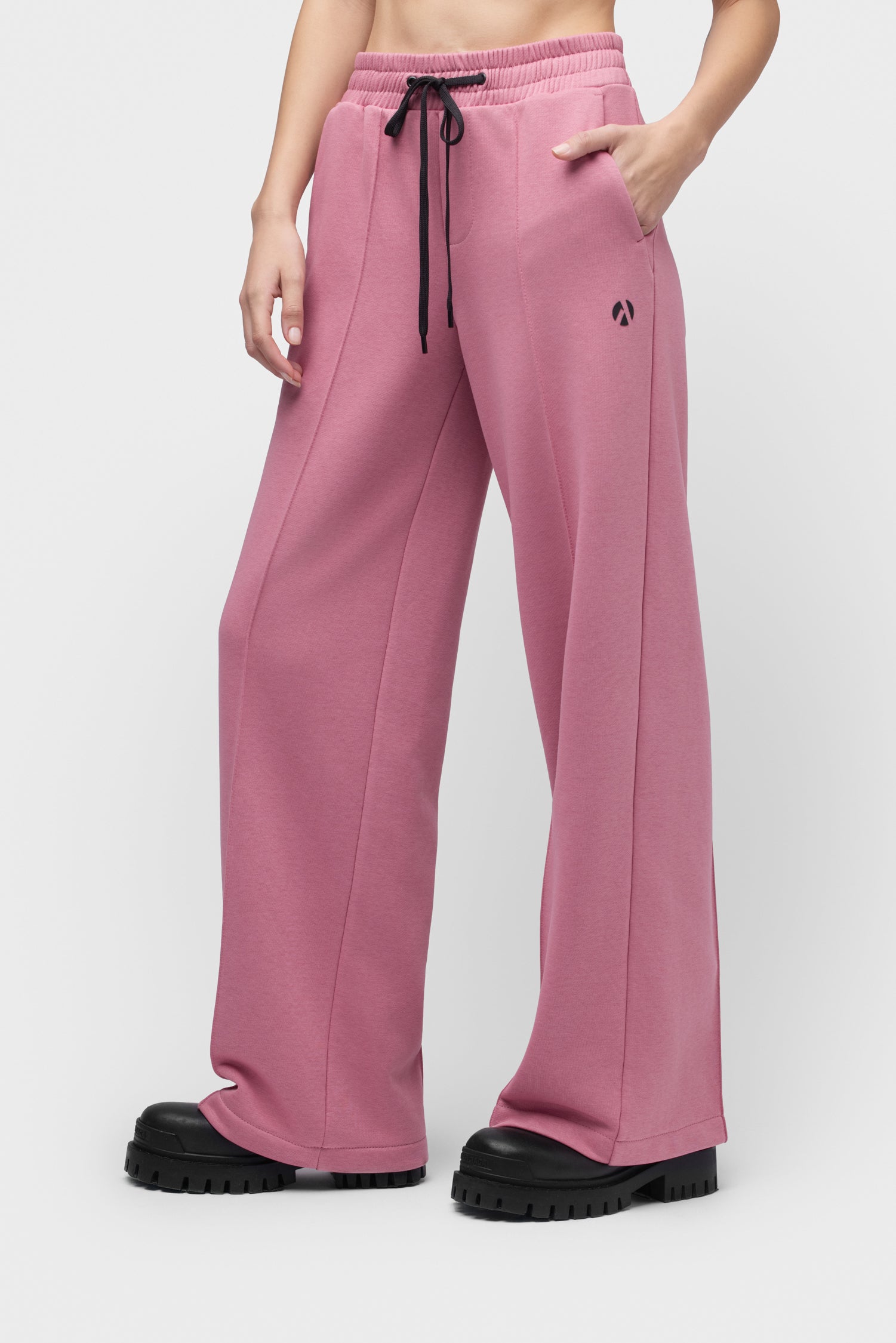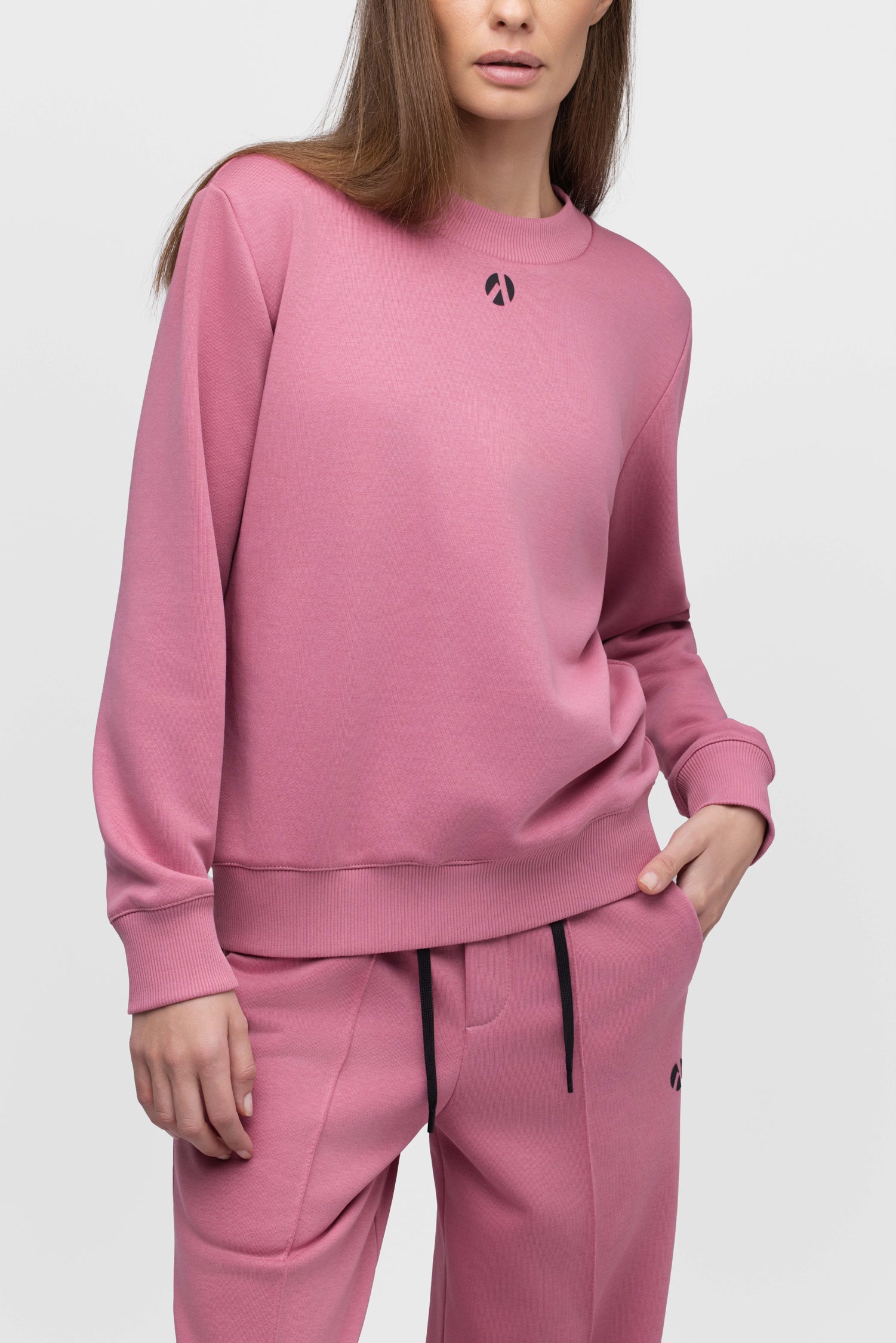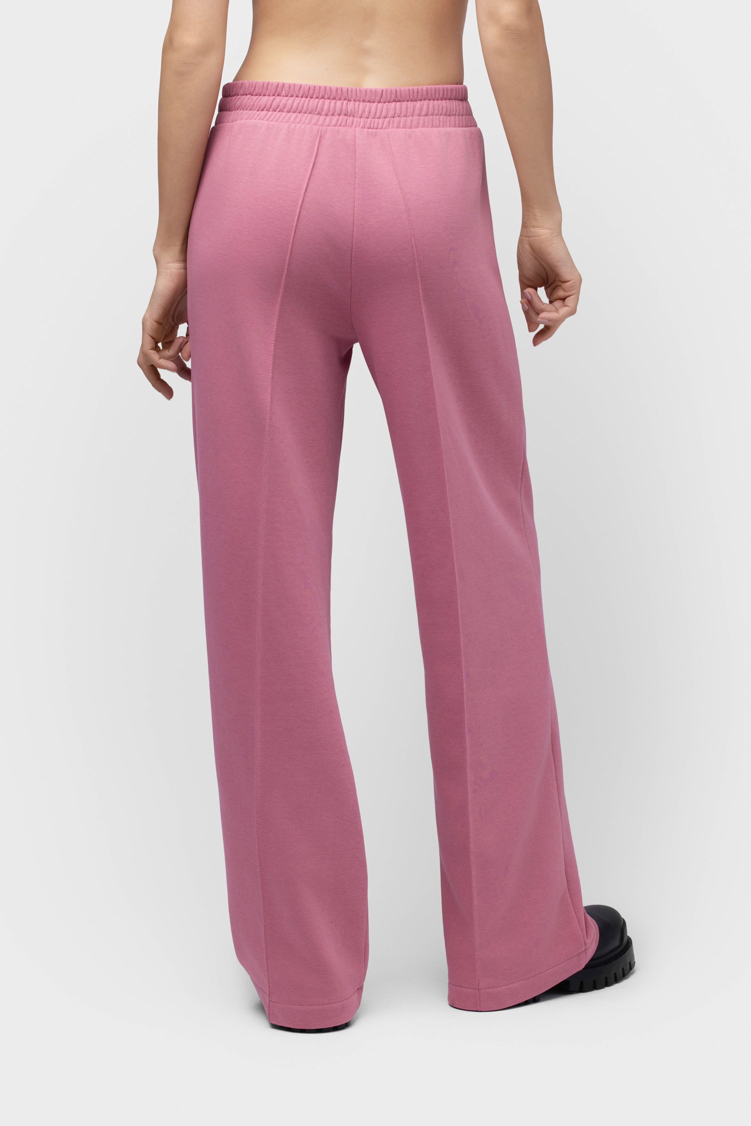 Dviejų dalių laisvalaikio kostiumas, pelenų rožės spalvos, dekoruotas juodais 3D logotipo transferais.