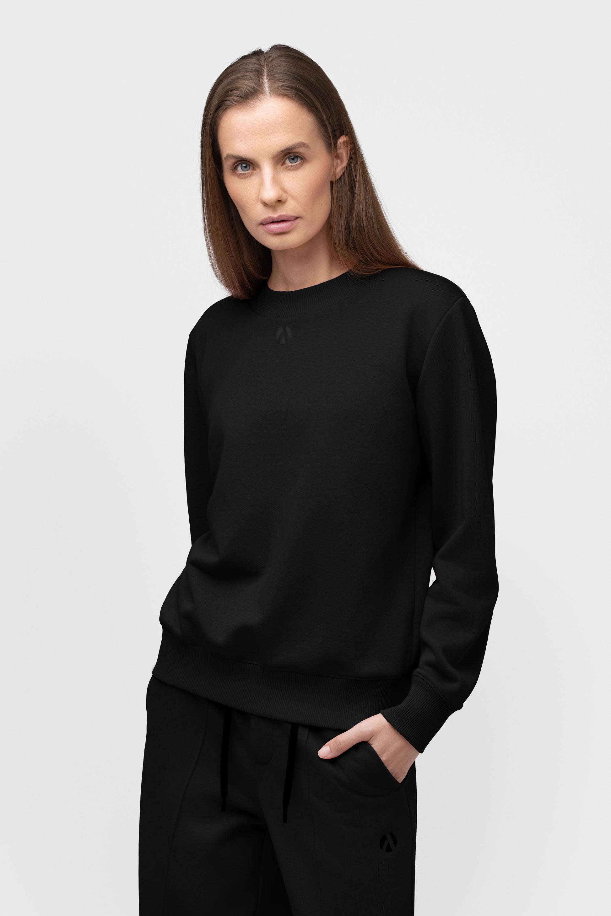 Džemperis – laisvo, tiesaus silueto, su apvaliu kaklu ir ilgomis rankovėmis. Apykaklė, rankogaliai ir apačia iš megzto trikotažo.