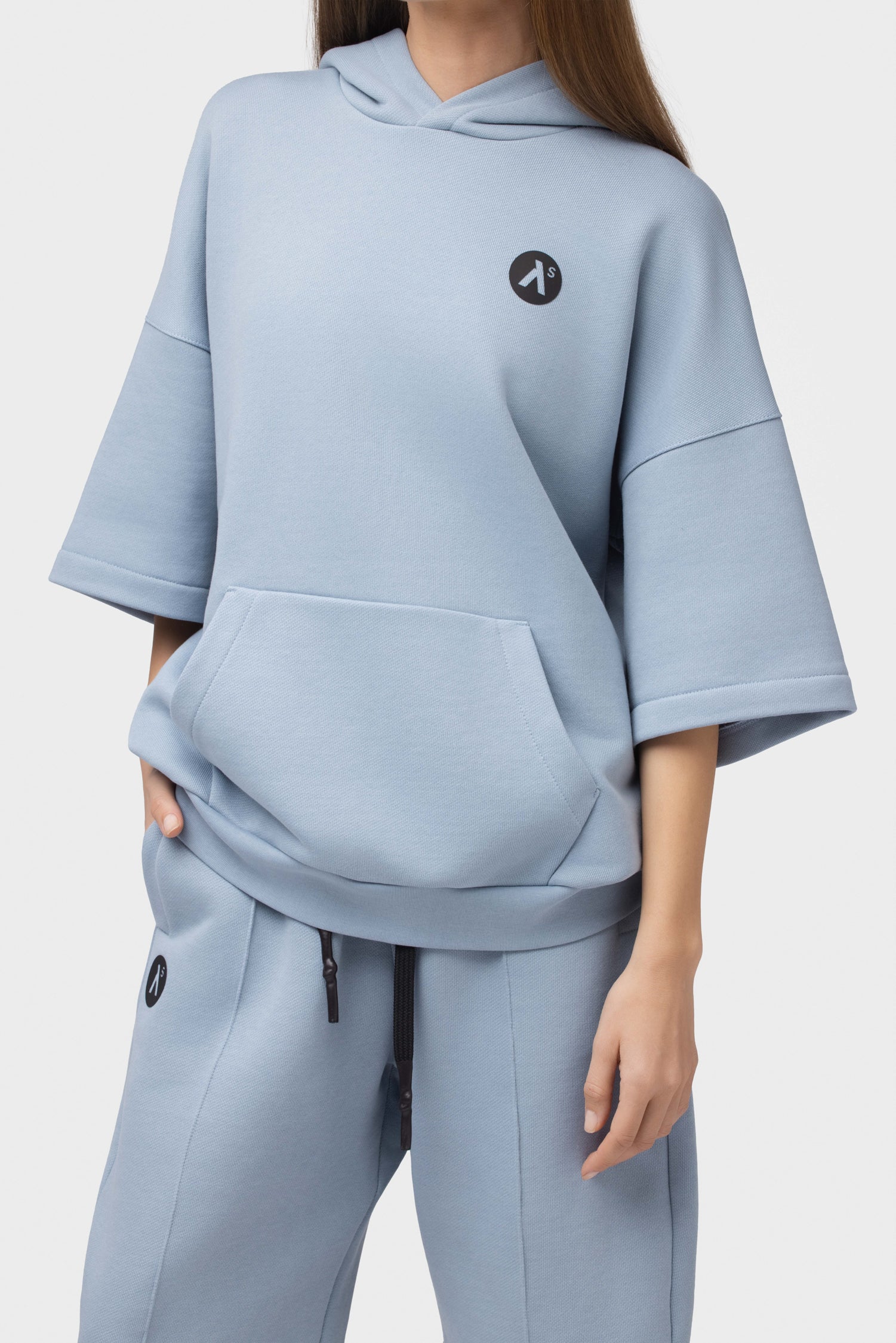 Laisvo silueto modelis su kapišonu ir nuleistomis rankovėmis iki alkūnių. Priekyje – kengūros tipo kišenė. Kairėje pusėje – juodas 3D logotipo dekoras.