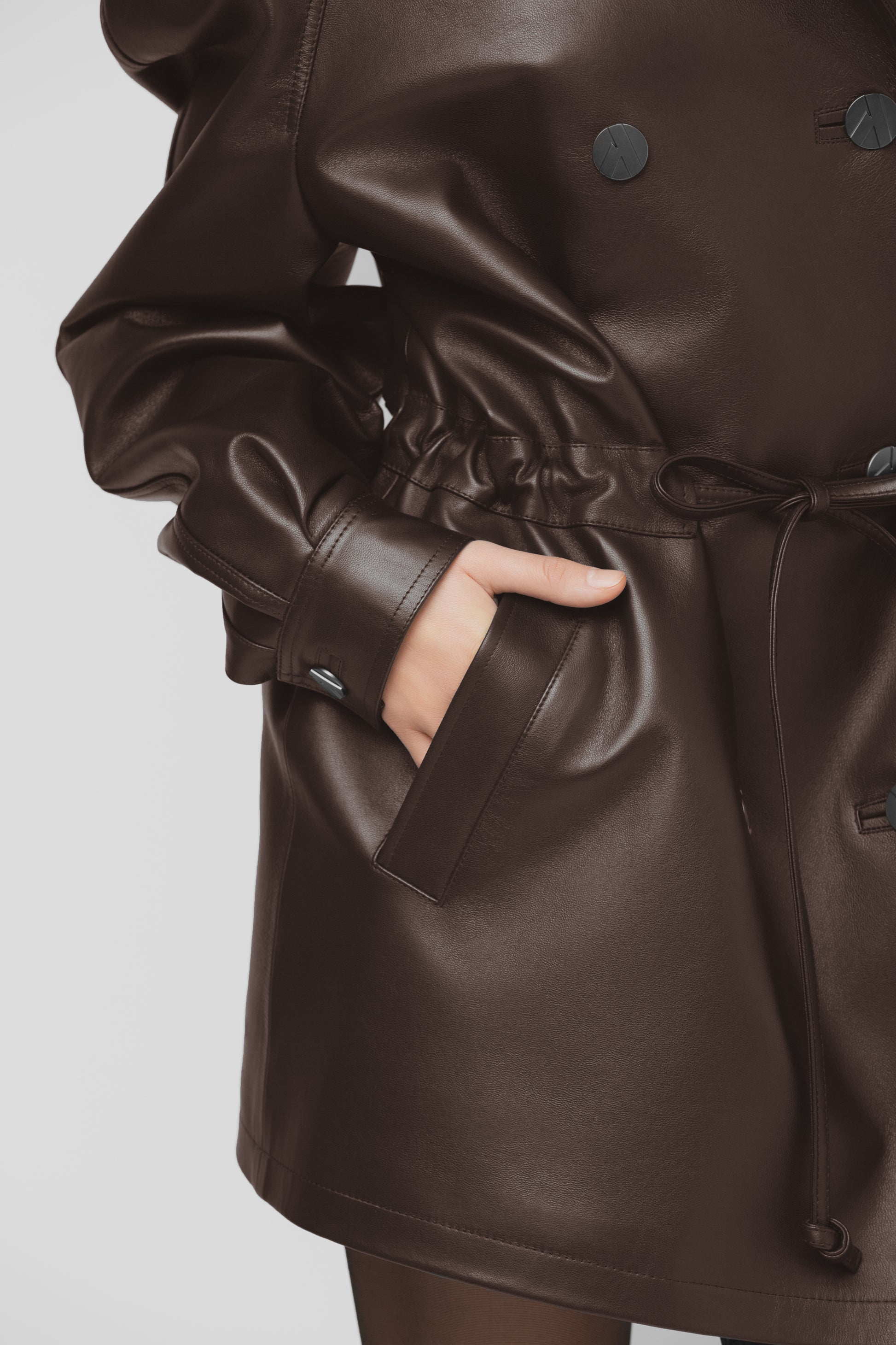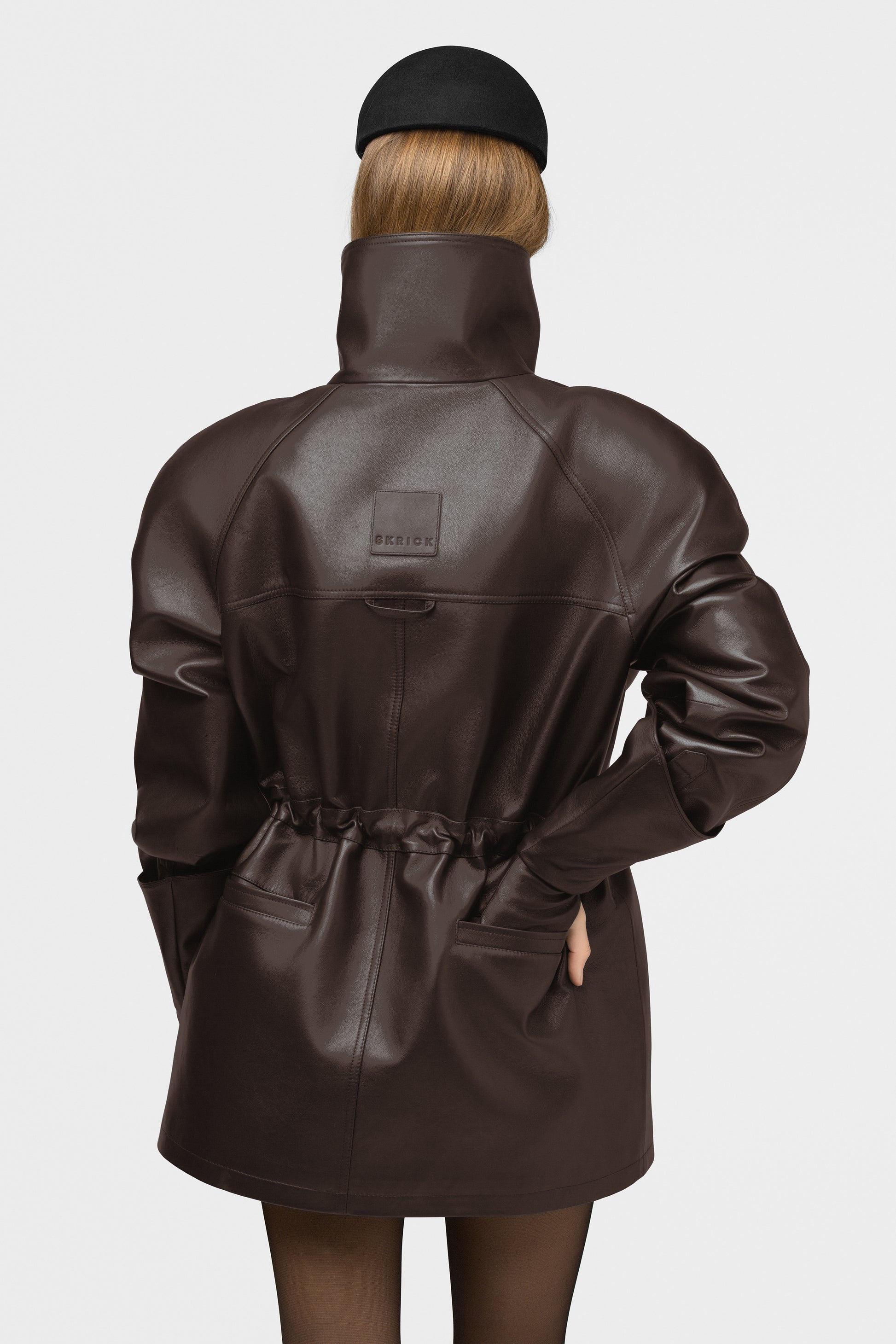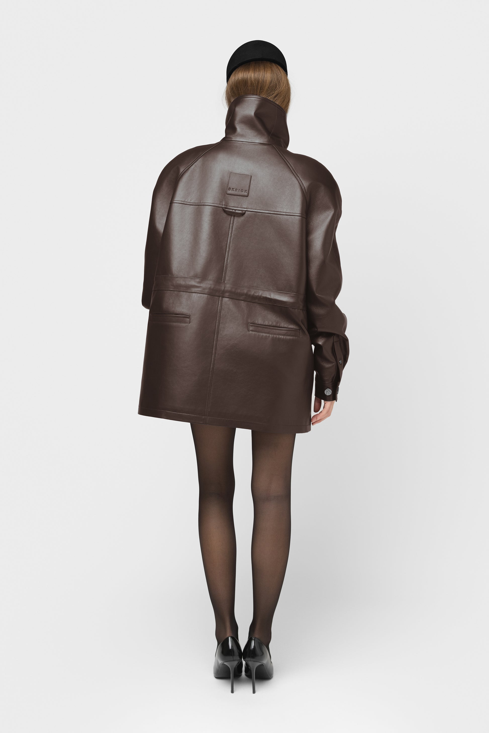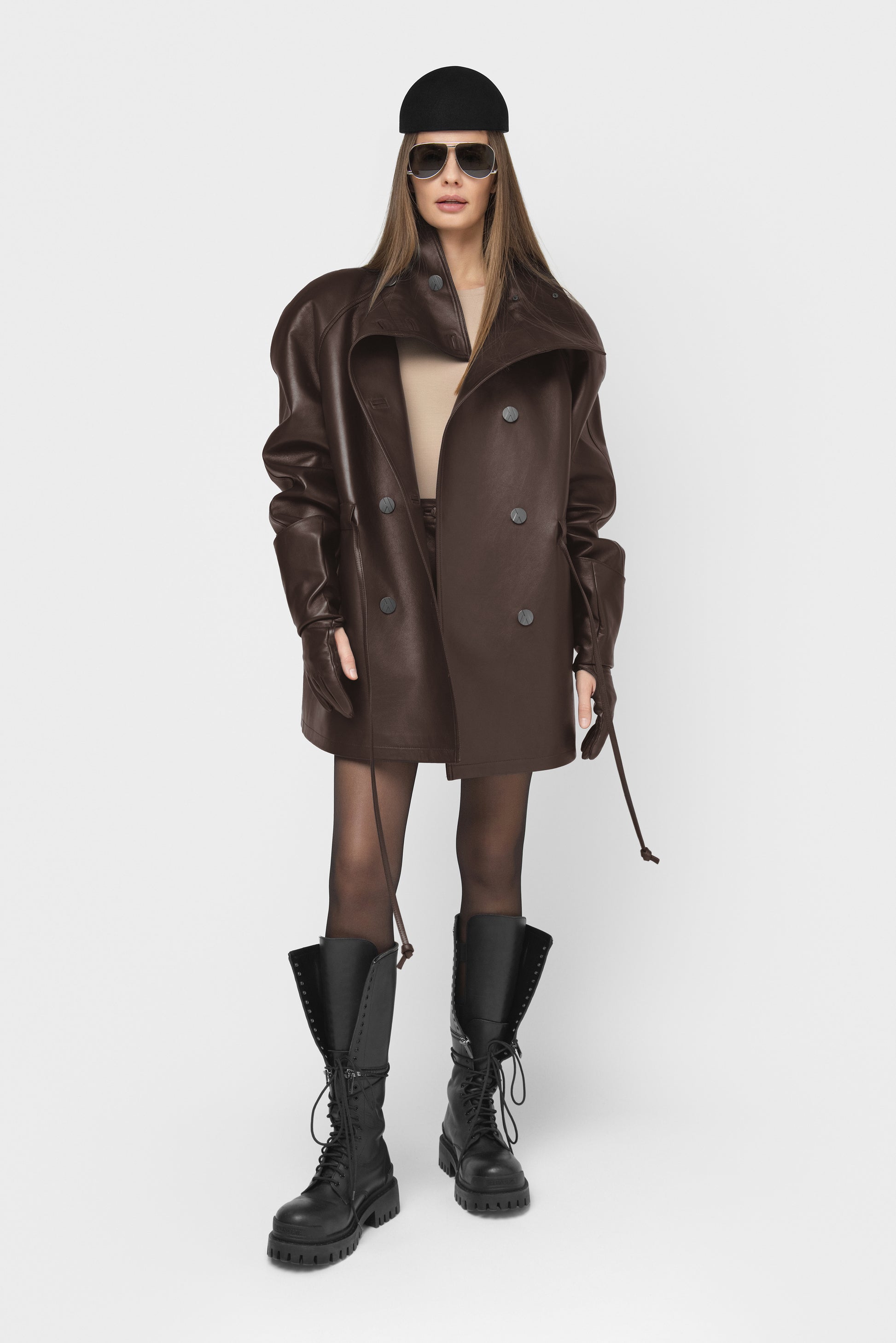 Moderni ir struktūruota pašiltinta striukė, pasiūta iš aukštos kokybės natūralios itališkos odos. Tamsiai rudos spalvos modelis su dvigubu užsegimu, aukšta apykakle ir dekoratyvinėmis vardinėmis sagomis. Vidus pašiltintas komfortui vėsesniu oru, pamušale – subtiliai išsiuvinėtas logotipas, liudijantis išskirtinį dėmesį detalėms. Paslėpti raišteliai ir šoninės kišenės užbaigia švarų, modernų siluetą. FORMA – tai tvirtas miesto stiliaus pareiškimas kasdienai ir ypatingoms progoms.