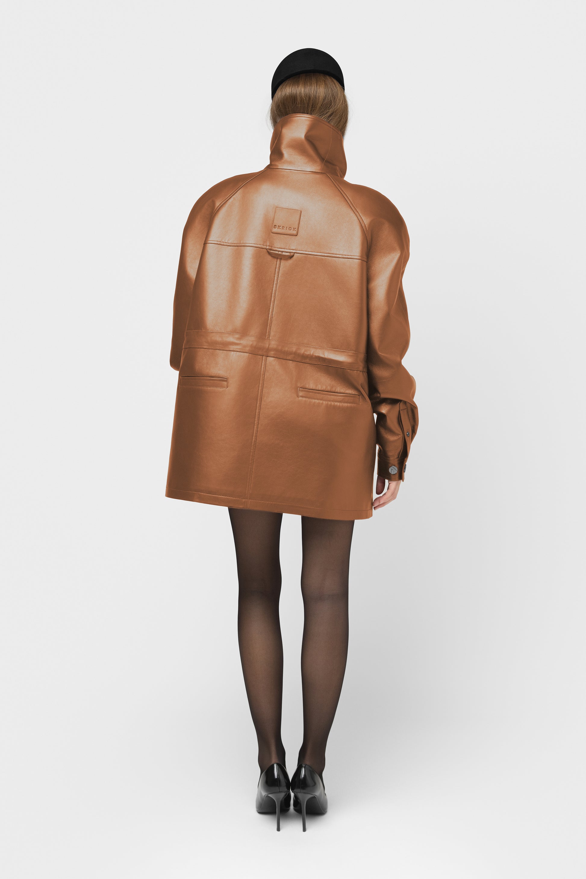 FORMA – pašiltinta natūralios odos striukė, konjako spalvos.