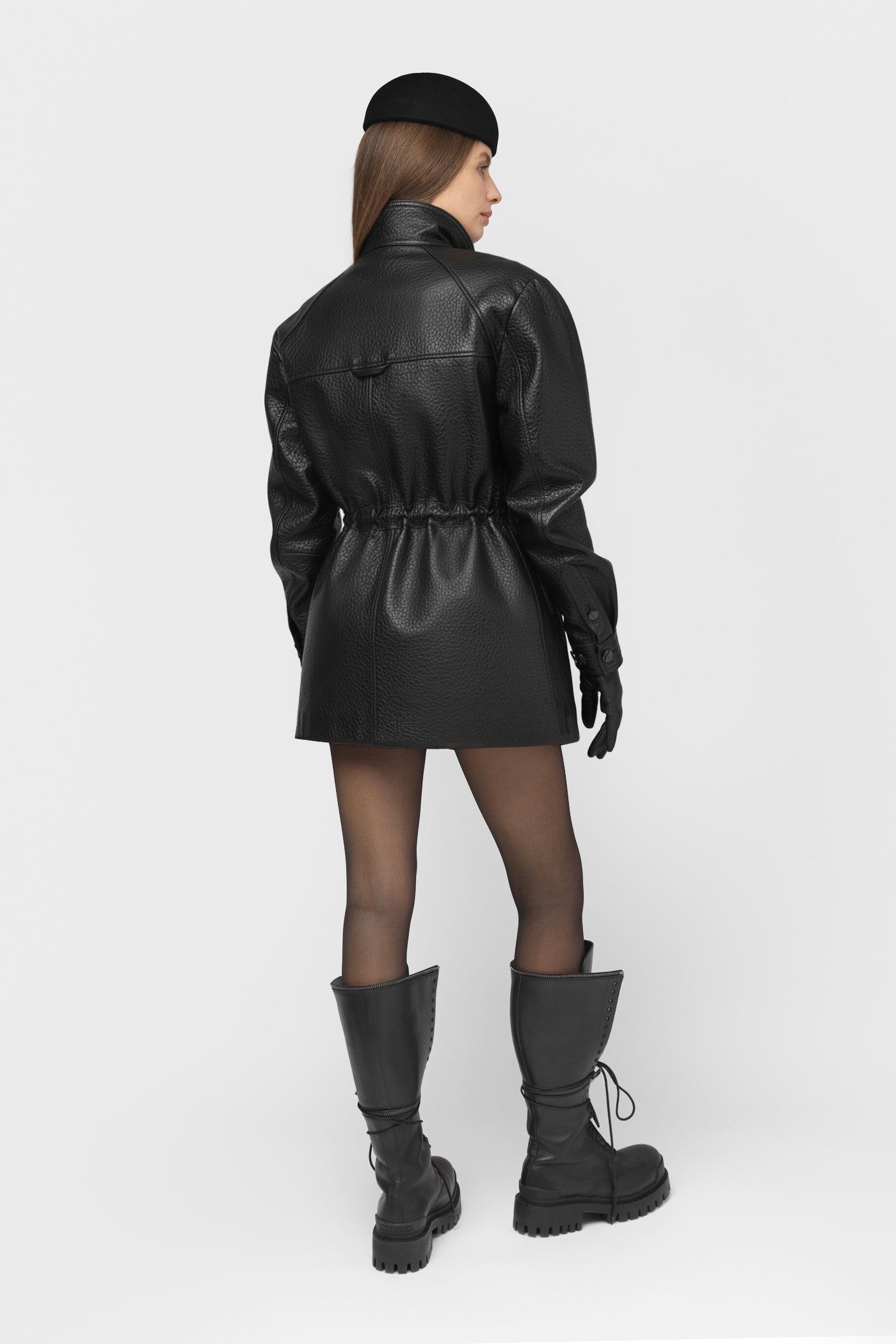 TERRA – natūralios odos striukė (juodos spalvos), grūdėta tekstūrinė oda.