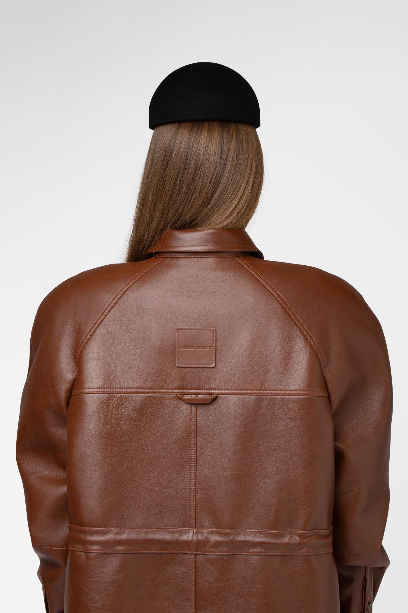 TERRA – natūralios odos striukė (kaštoninės spalvos), lygi oda.
