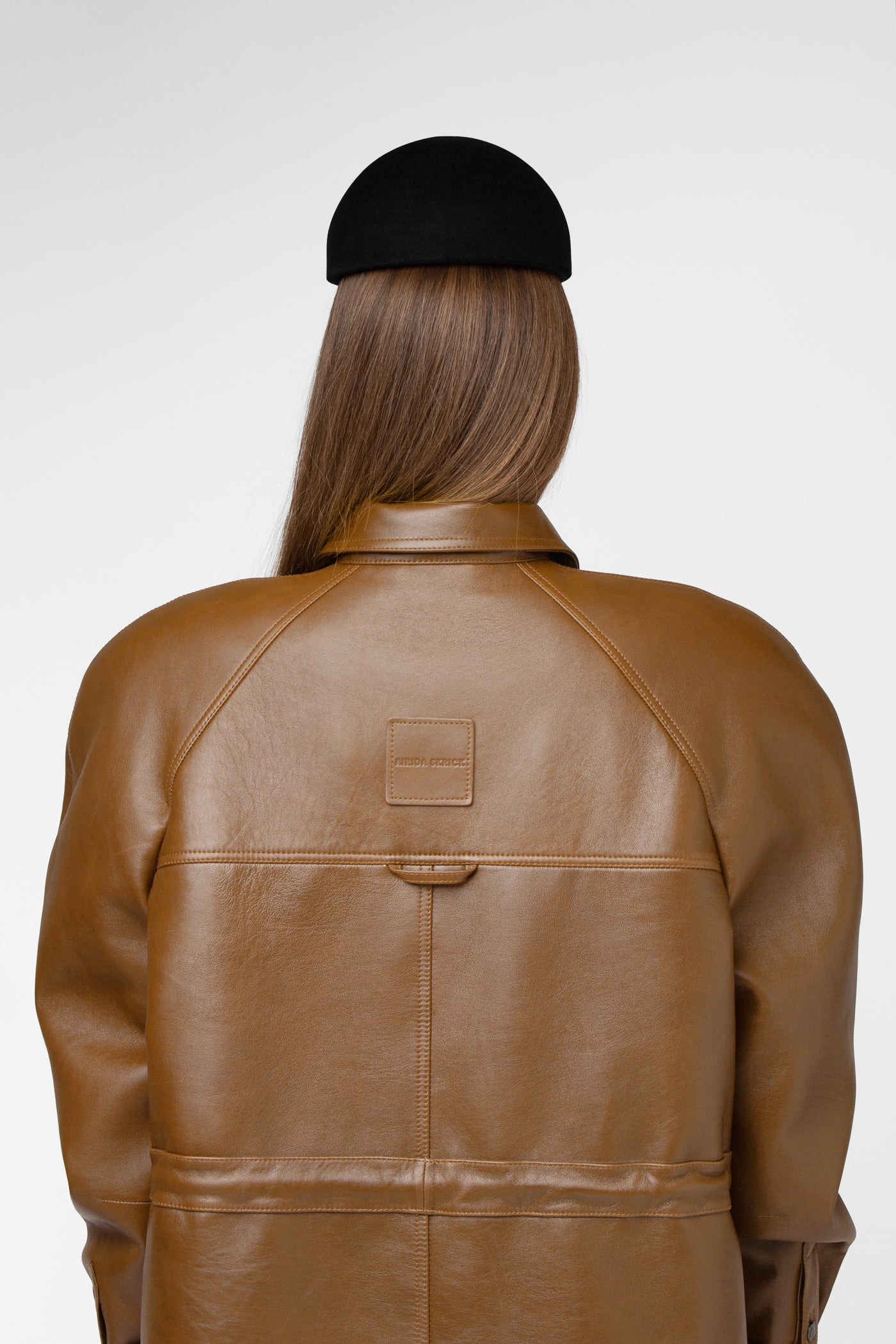 TERRA – natūralios odos striukė (Smėlio spalvos), netolygus dažymas, lygi oda.
