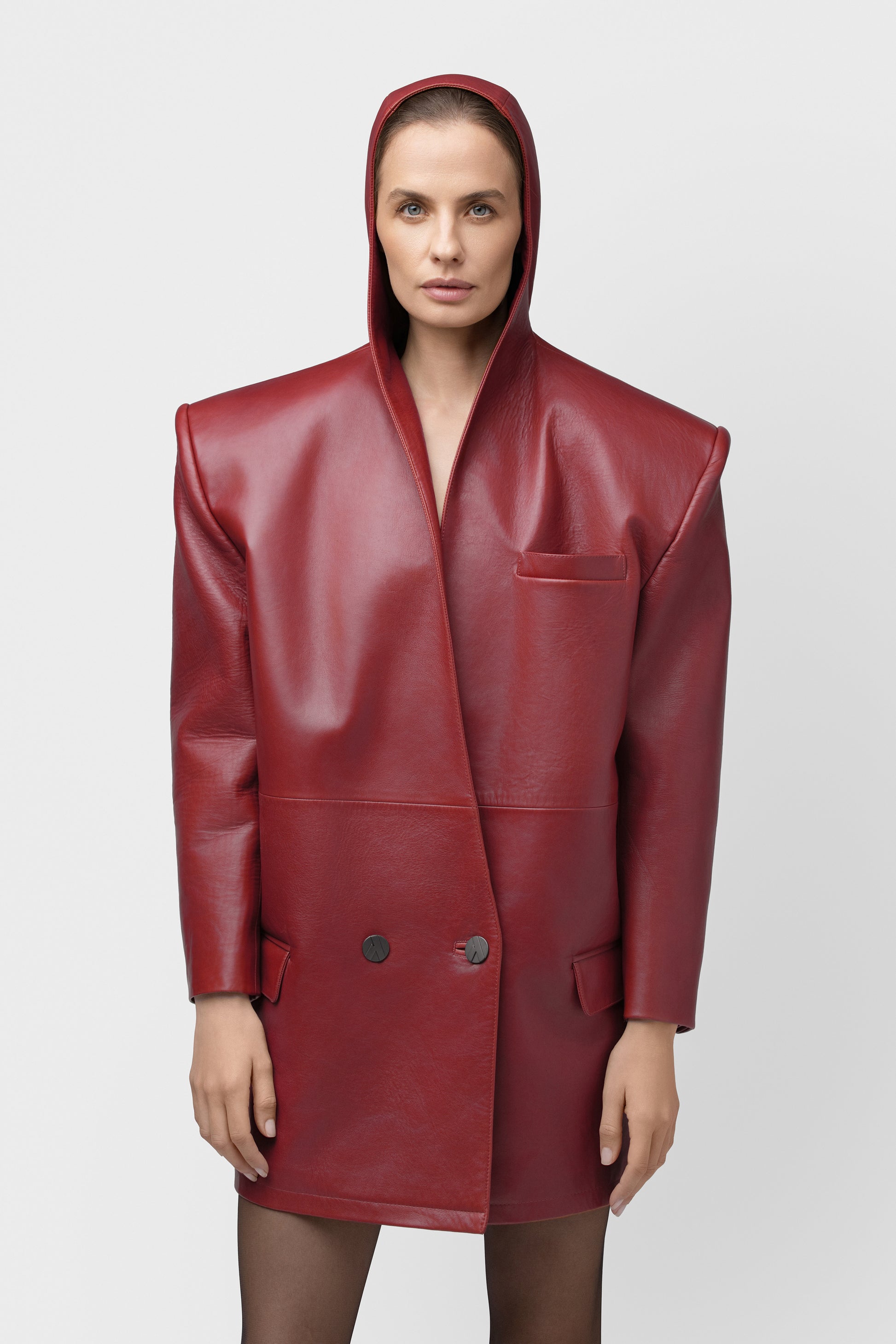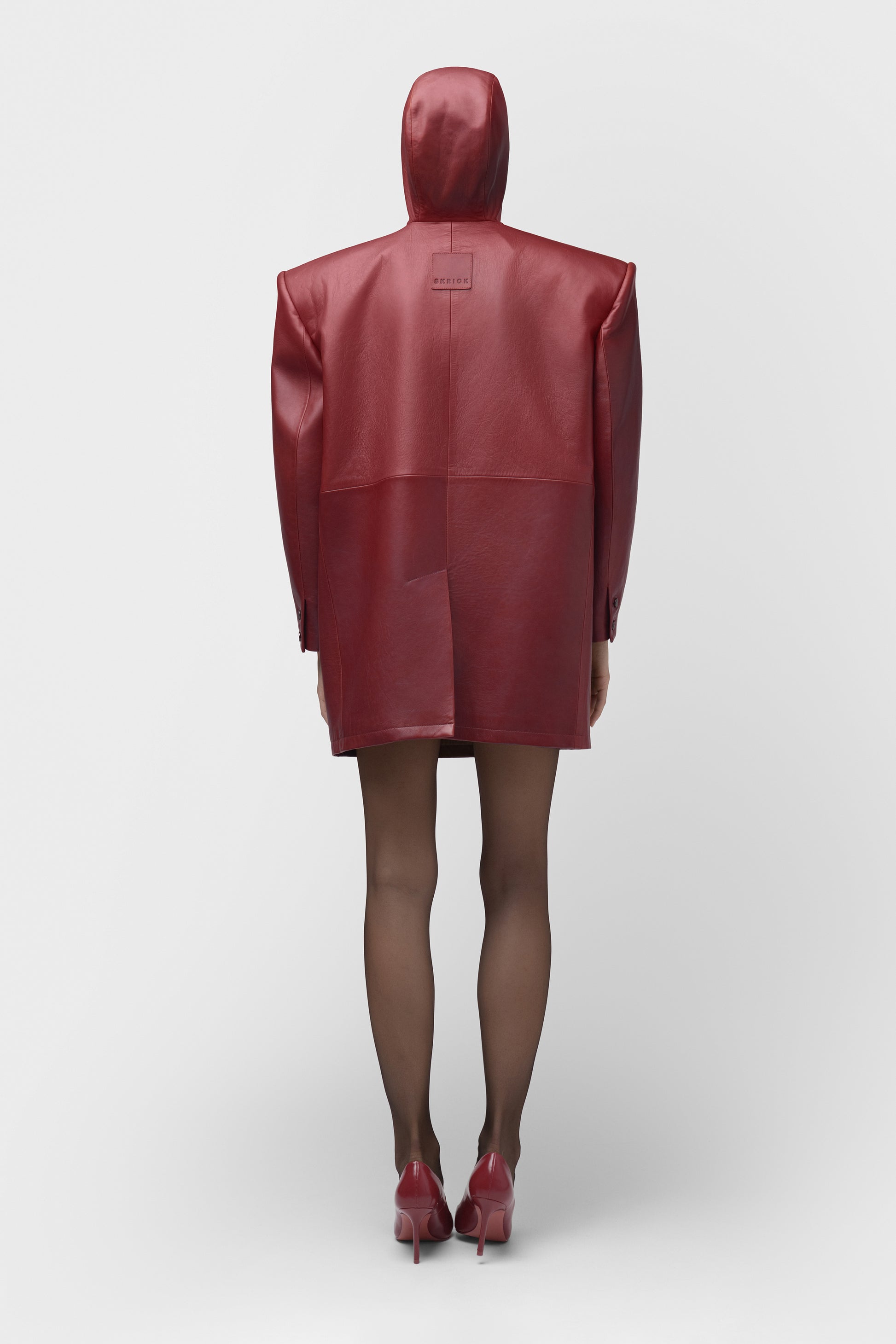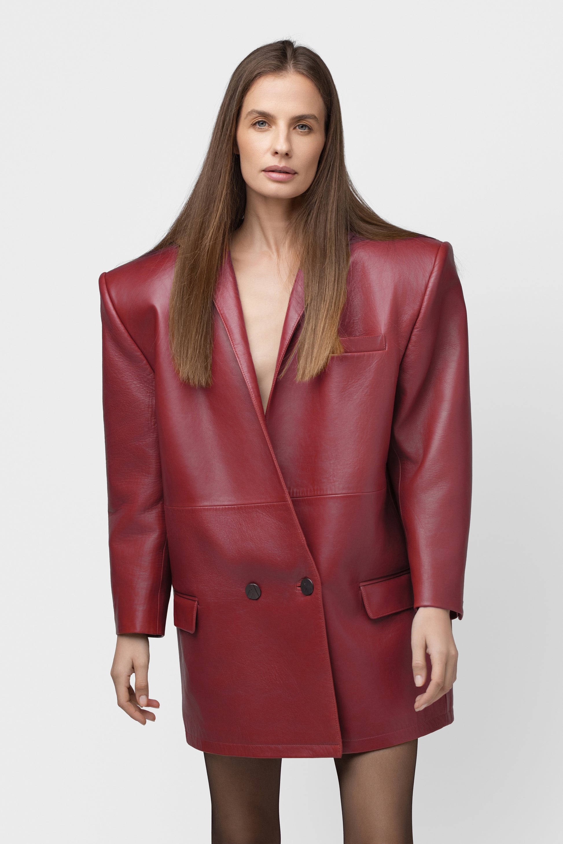 Oversize silueto švarkas iš natūralios minkštos odos – šiuolaikinės jėgos ir švelnumo balansas. Skulptūriškas siluetas formuojamas konstrukciniais sprendimais, o oda suteikia subtilų blizgesį ir natūralų glamžumą.