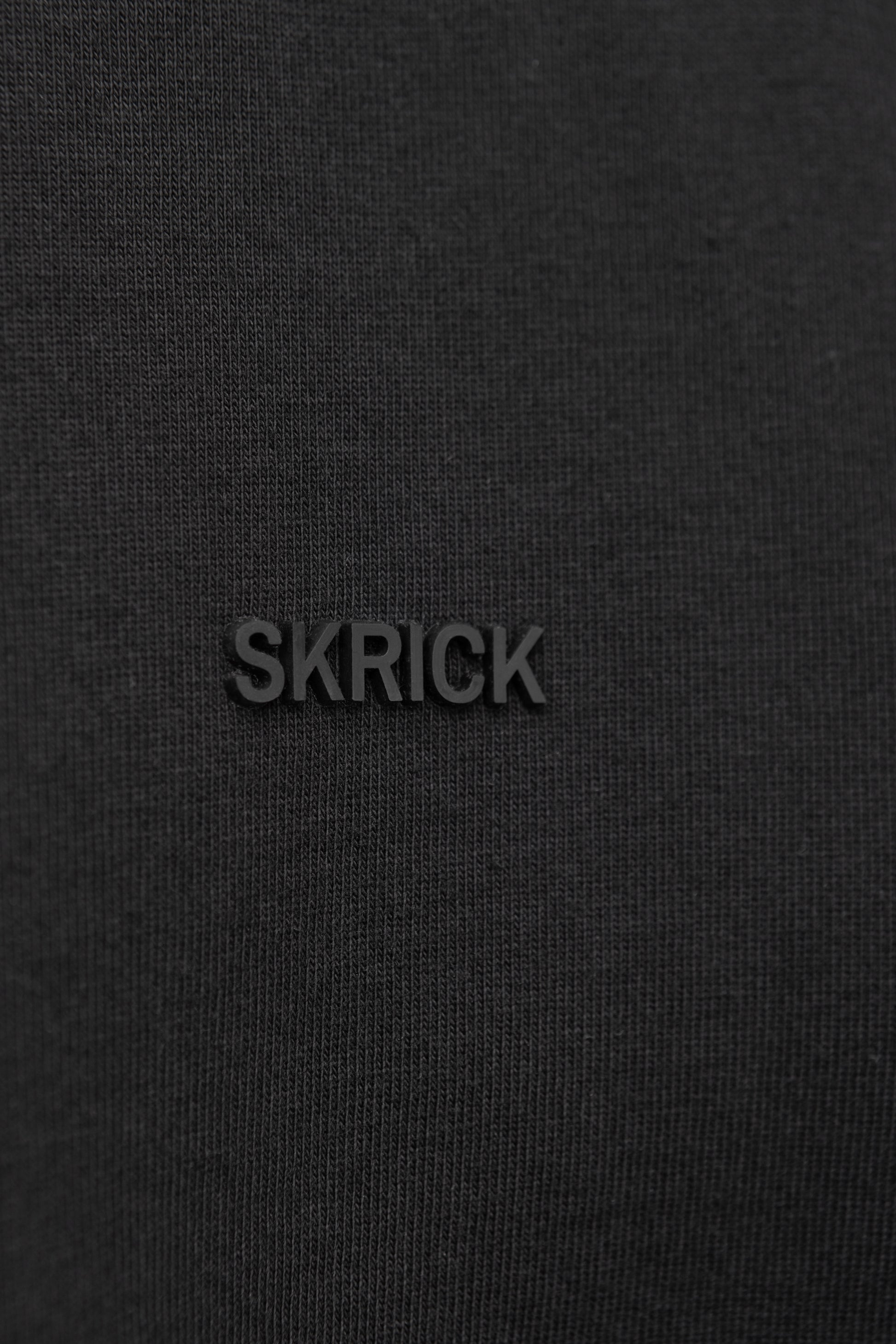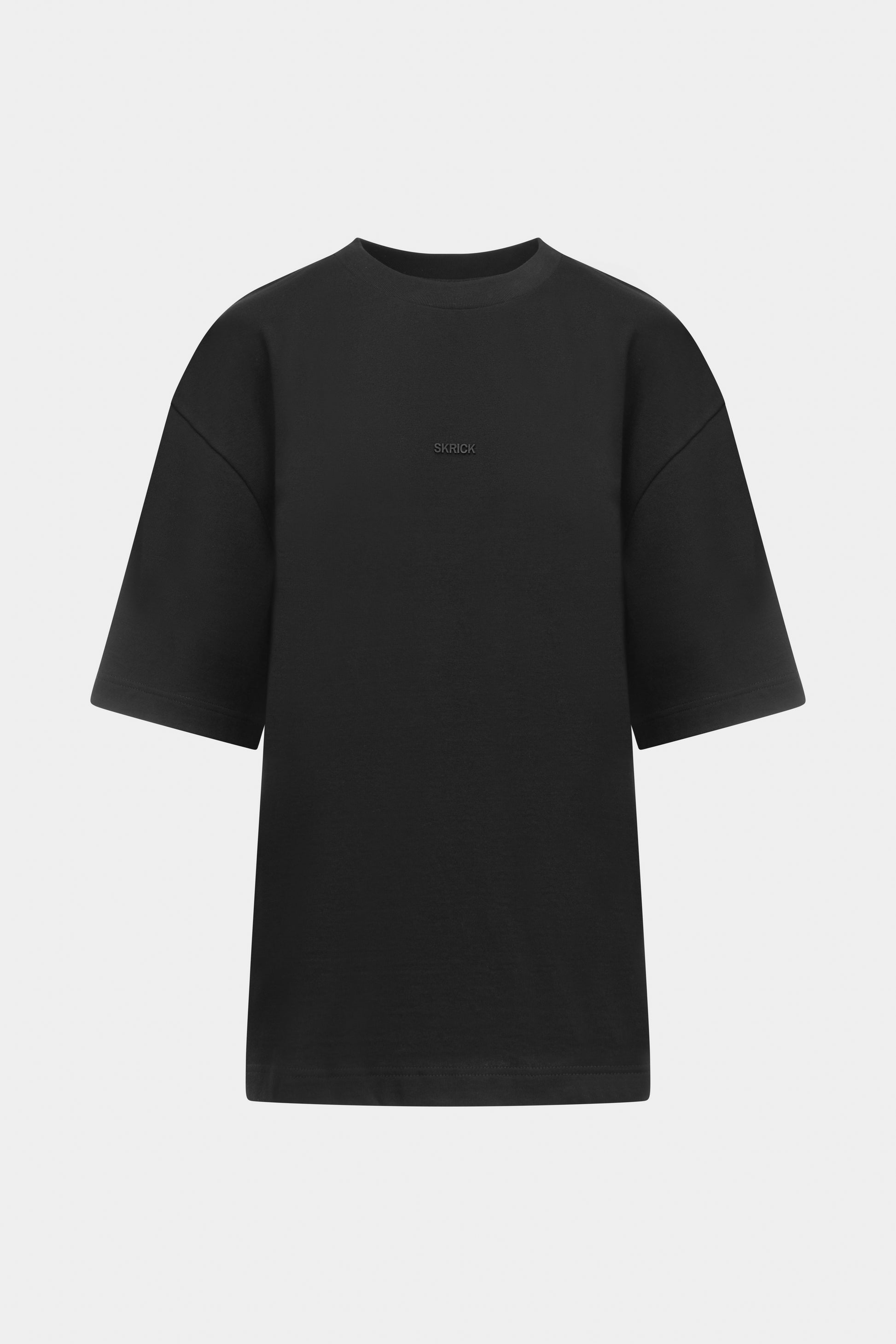 Juodi, standaus 100 % medvilnės trikotažo marškinėliai, pasiūti oversized silueto. Modelis su apvalia apykakle, plačiu tiesiu kirpimu ir nuleistomis rankovėmis. Centre, virš krūtinės, – juodas 3D SKRICK logotipo dekoras, suteikiantis minimalistinį, išraiškingą akcentą.