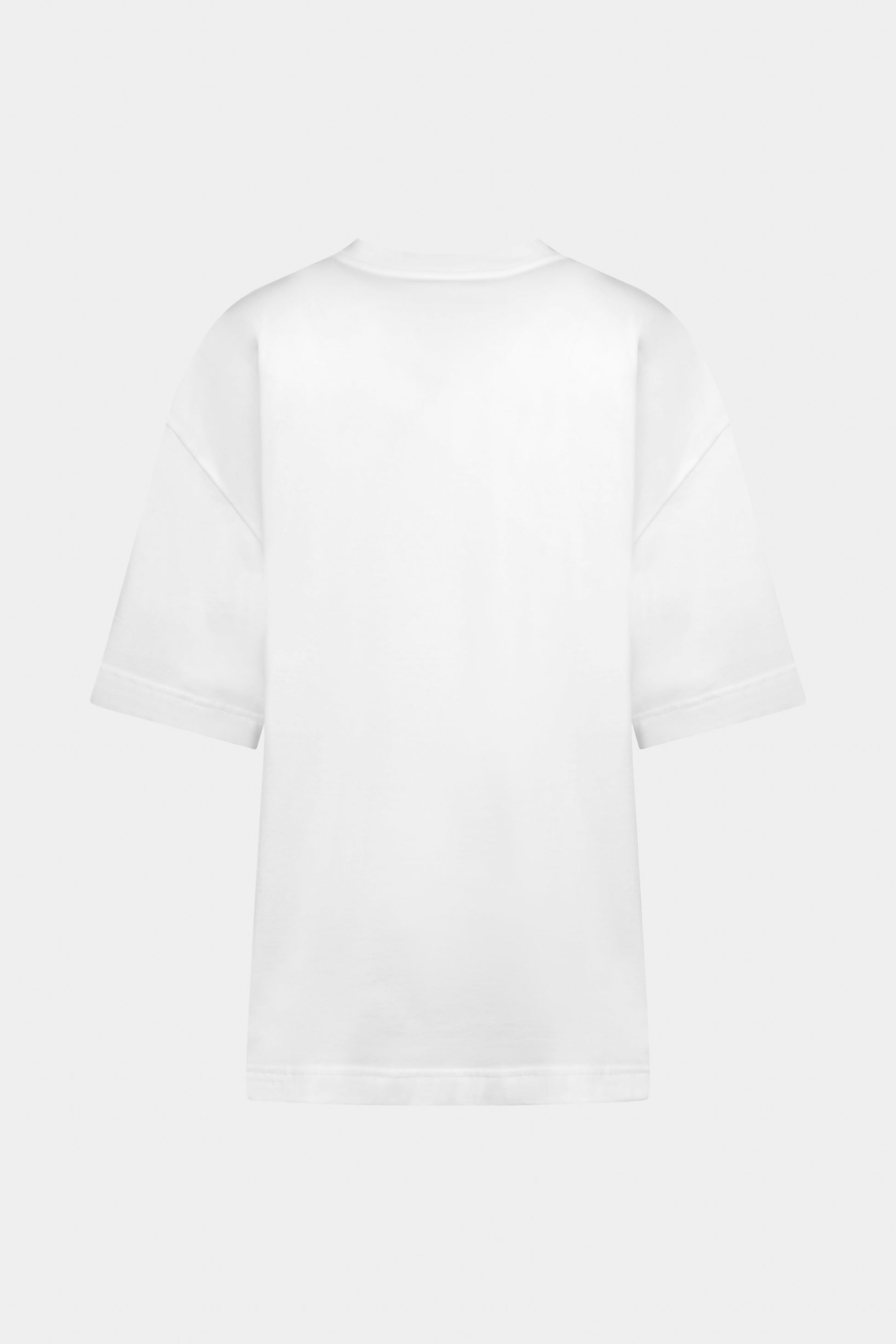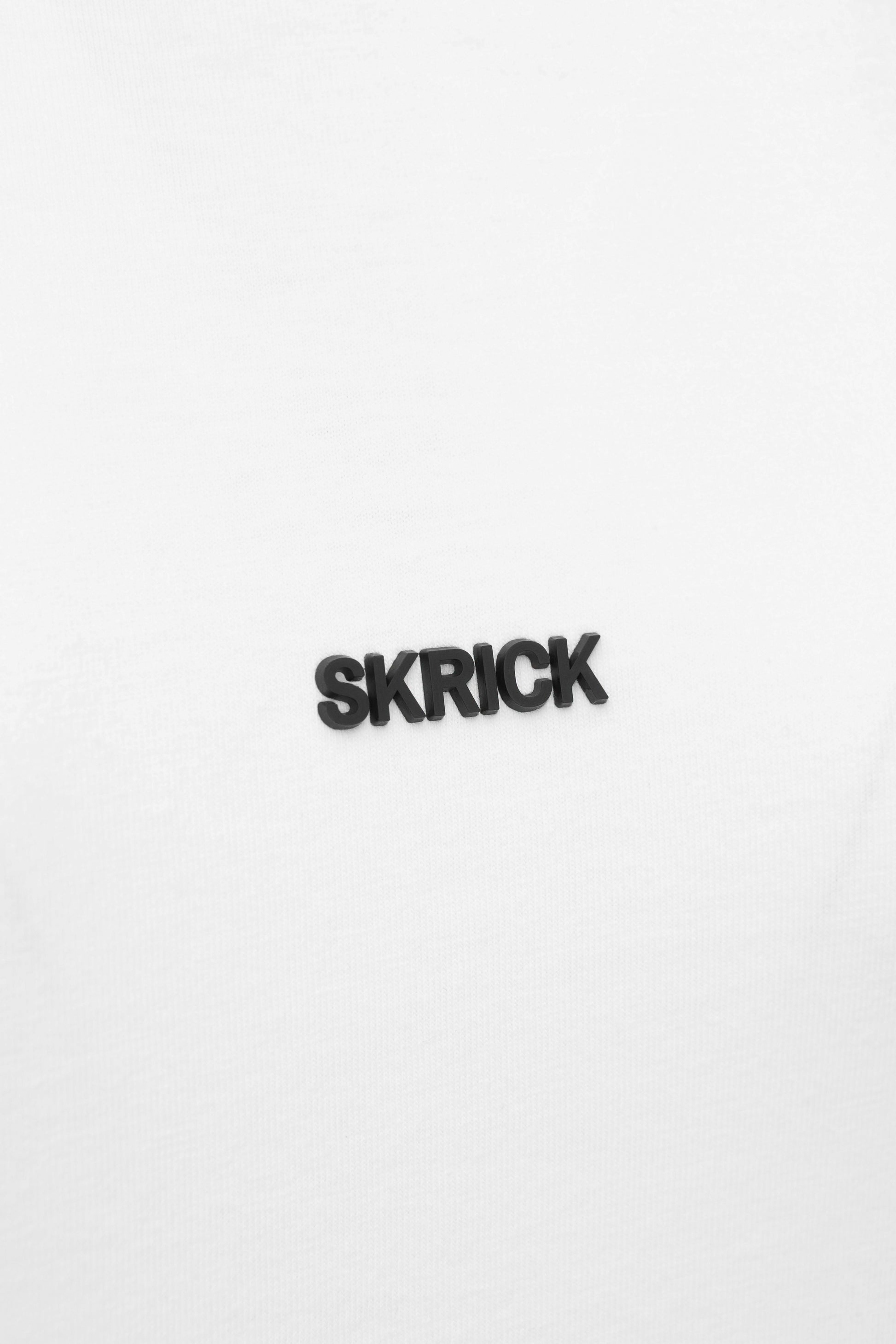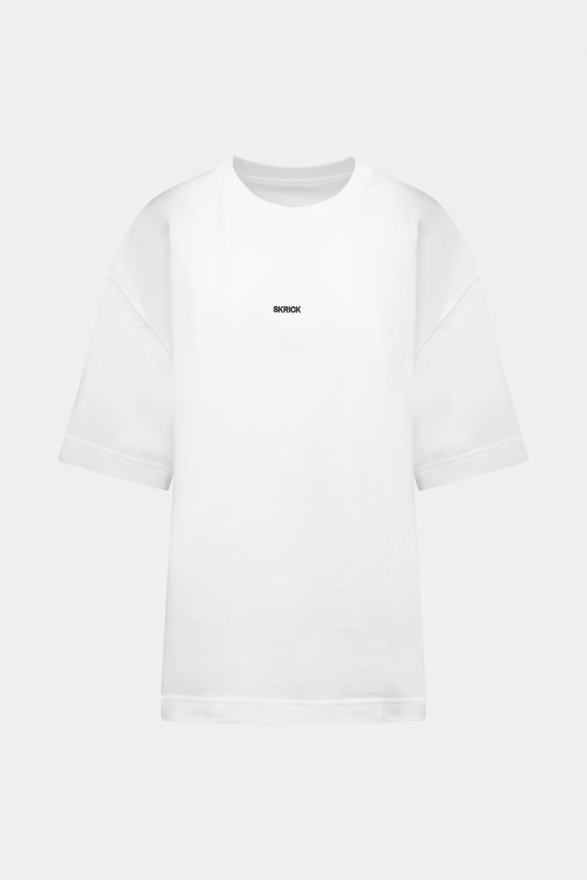 Balti, standaus 100 % medvilnės trikotažo marškinėliai, pasiūti oversized silueto. Modelis su apvalia apykakle, plačiu tiesiu kirpimu ir nuleistomis rankovėmis. Centre, virš krūtinės, – juodas 3D SKRICK logotipo dekoras, suteikiantis minimalistinį, išraiškingą akcentą.