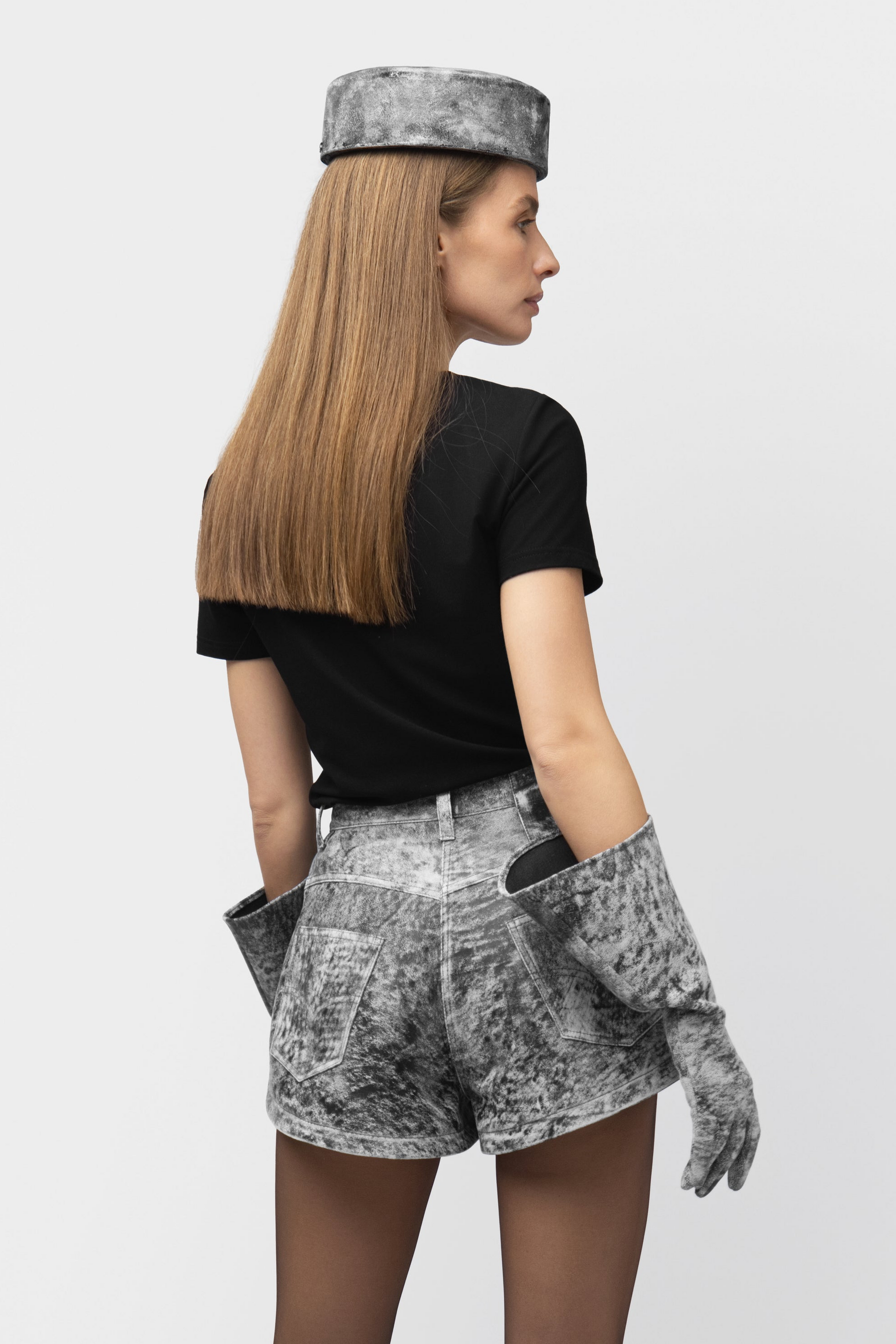 EBONE cilindro formos skrybėlė iš kolekcijos VELA. Įkūnijanti tapybos estetiką ir brutalistinę eleganciją. Kiekviena skrybėlė – unikali, nes rankomis tapytas paviršius sukuria nepakartojamą tekstūrą, primenančią šiuolaikinį meno objektą.