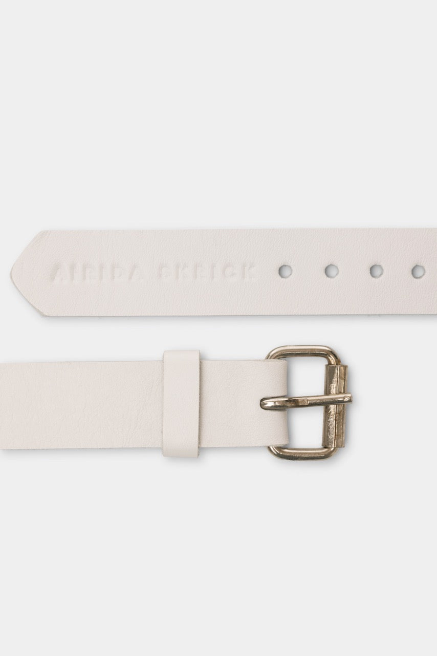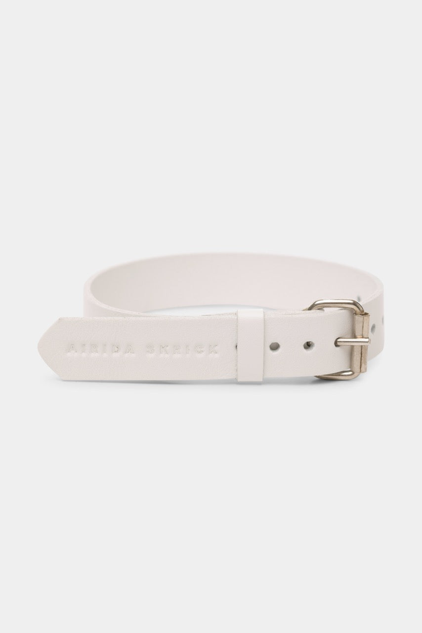 Minimalistinio dizaino apyrankė, pagaminta iš natūralios pieno baltos odos.
