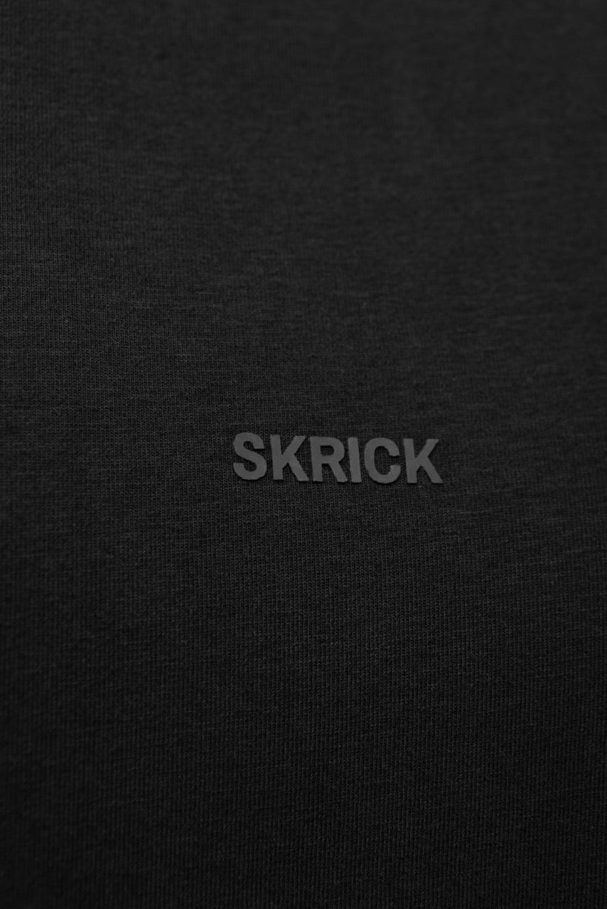 Centre, virš krūtinės – juodas klijuojamas 3D SKRICK logotipo dekoras, suteikiantis minimalistinį ir modernų akcentą.