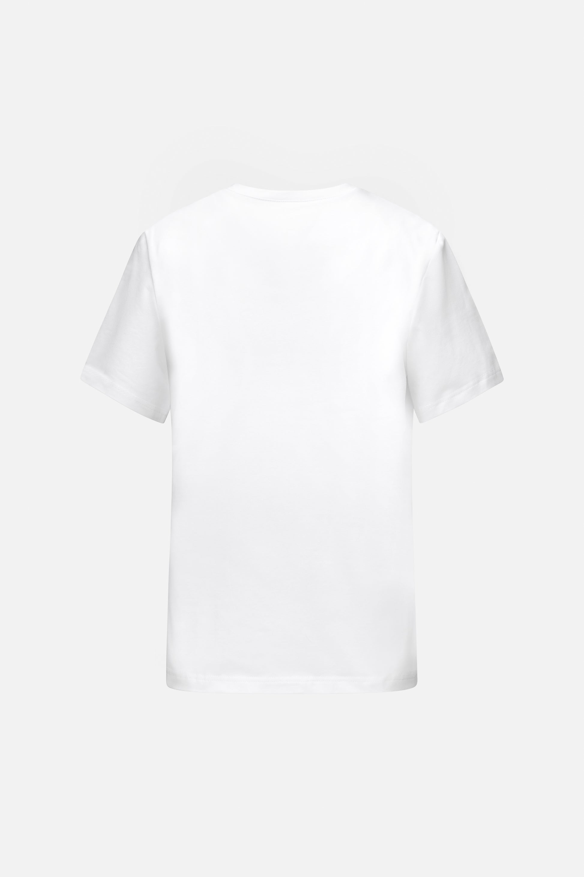 Tiesaus kirpimo balti marškinėliai, pasiūti iš švelnaus plonos viskozės trikotažo.